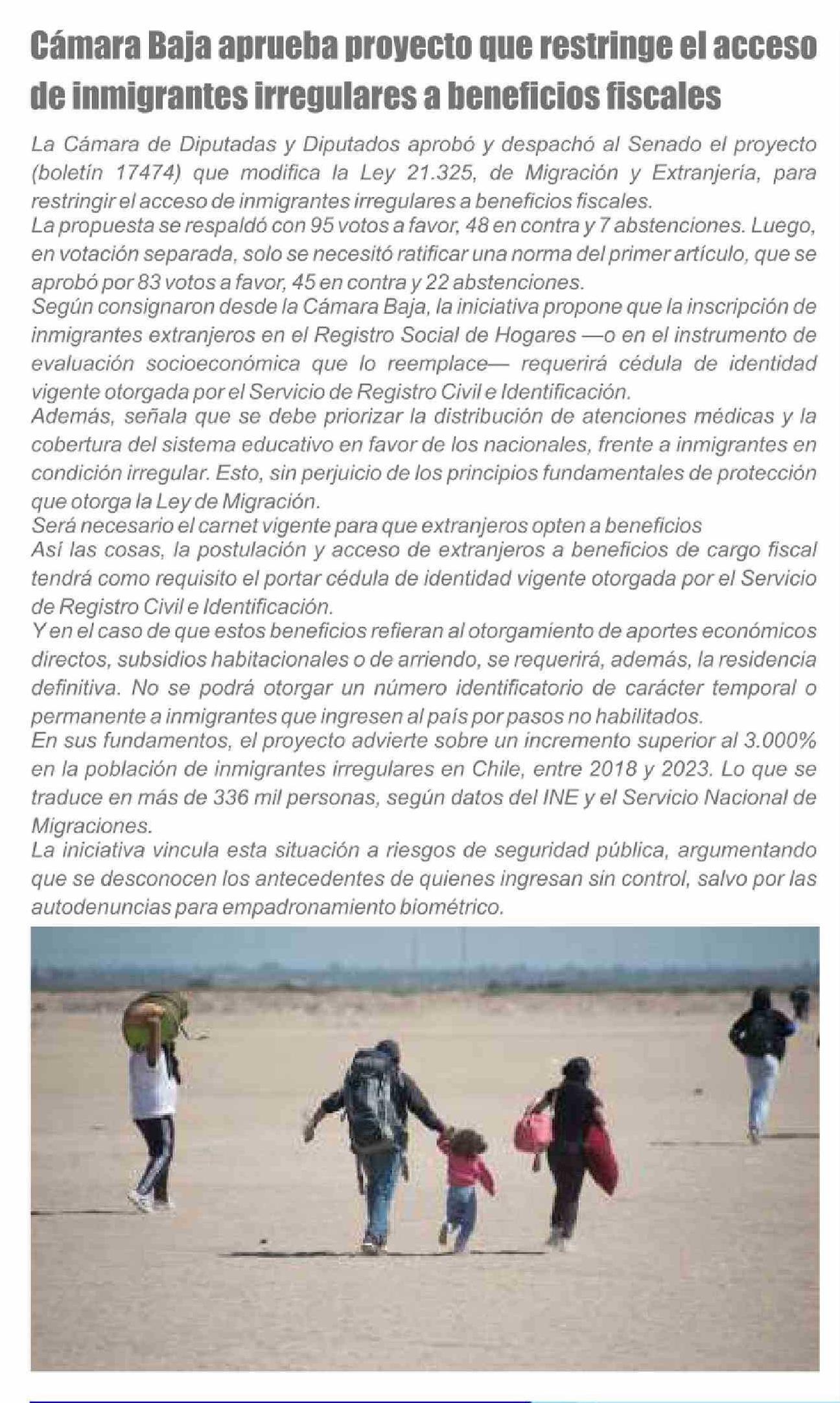 Cámara Baja aprueba proyecto que restringe el acceso de inmigrantes irregulares a beneficios fiscales 25-03-2026 El Labrador |