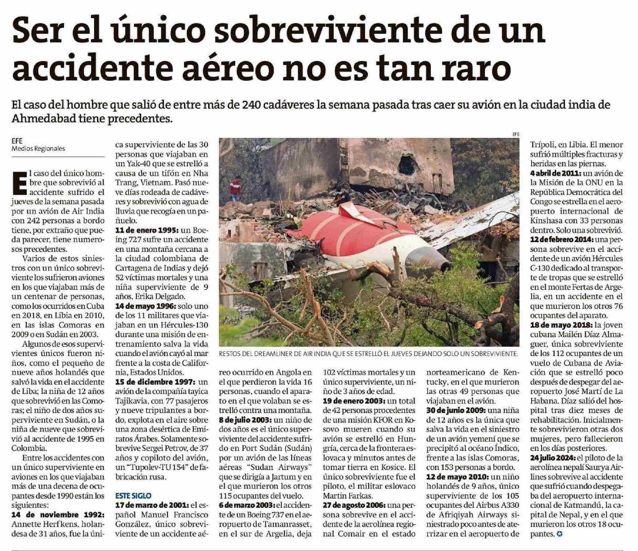Ser el único sobreviviente de un accidente aéreo no es tan raro 18-06-2025 La Estrella de Chiloé |
