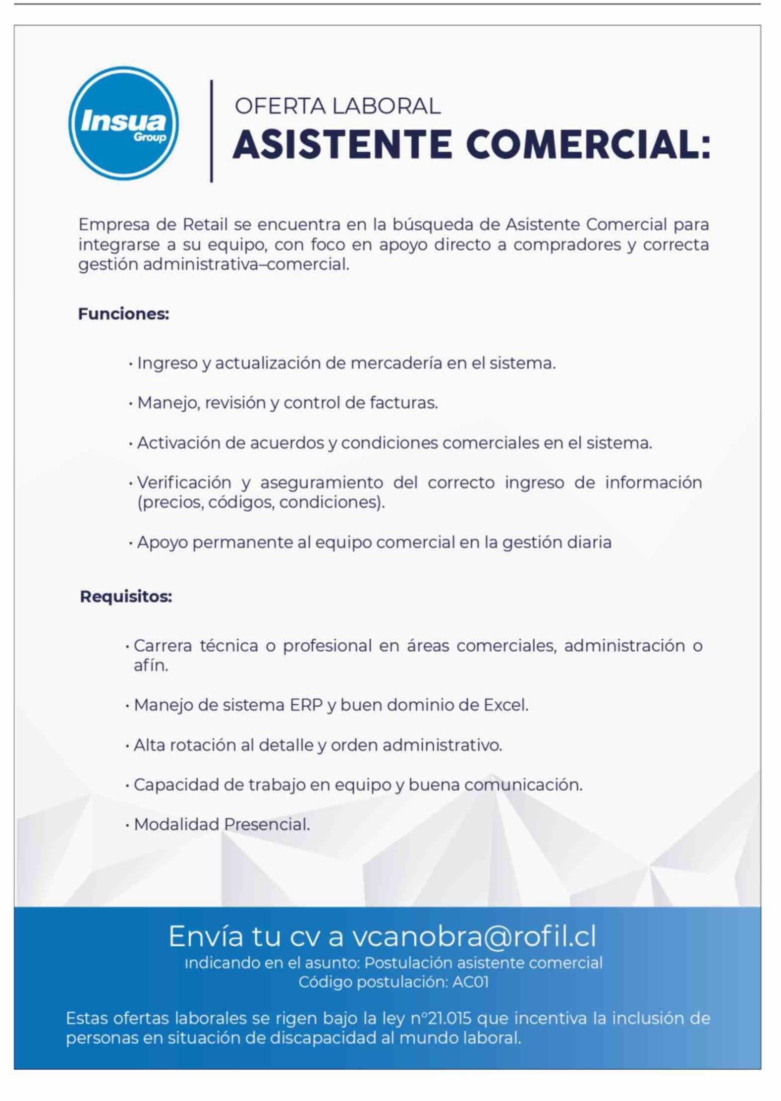 | Título: | Aviso Empleo: ASISTENTE COMERCIAL: |