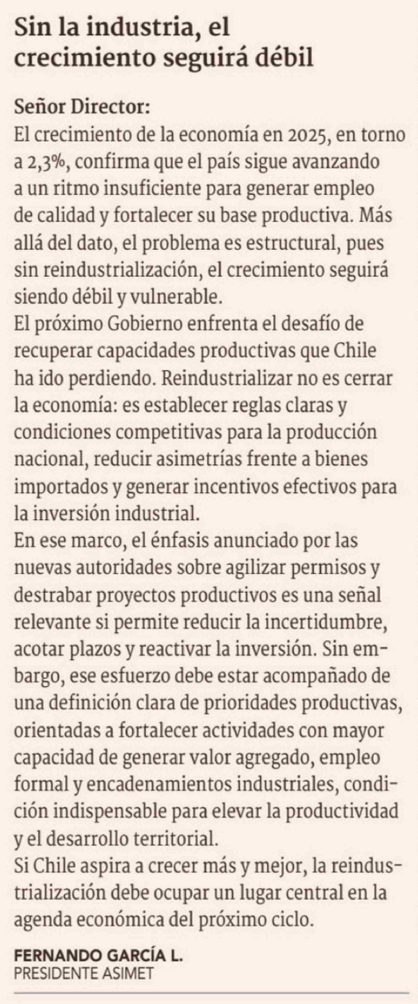 Título: Cartas: Sin la industria, el crecimiento seguirá débil