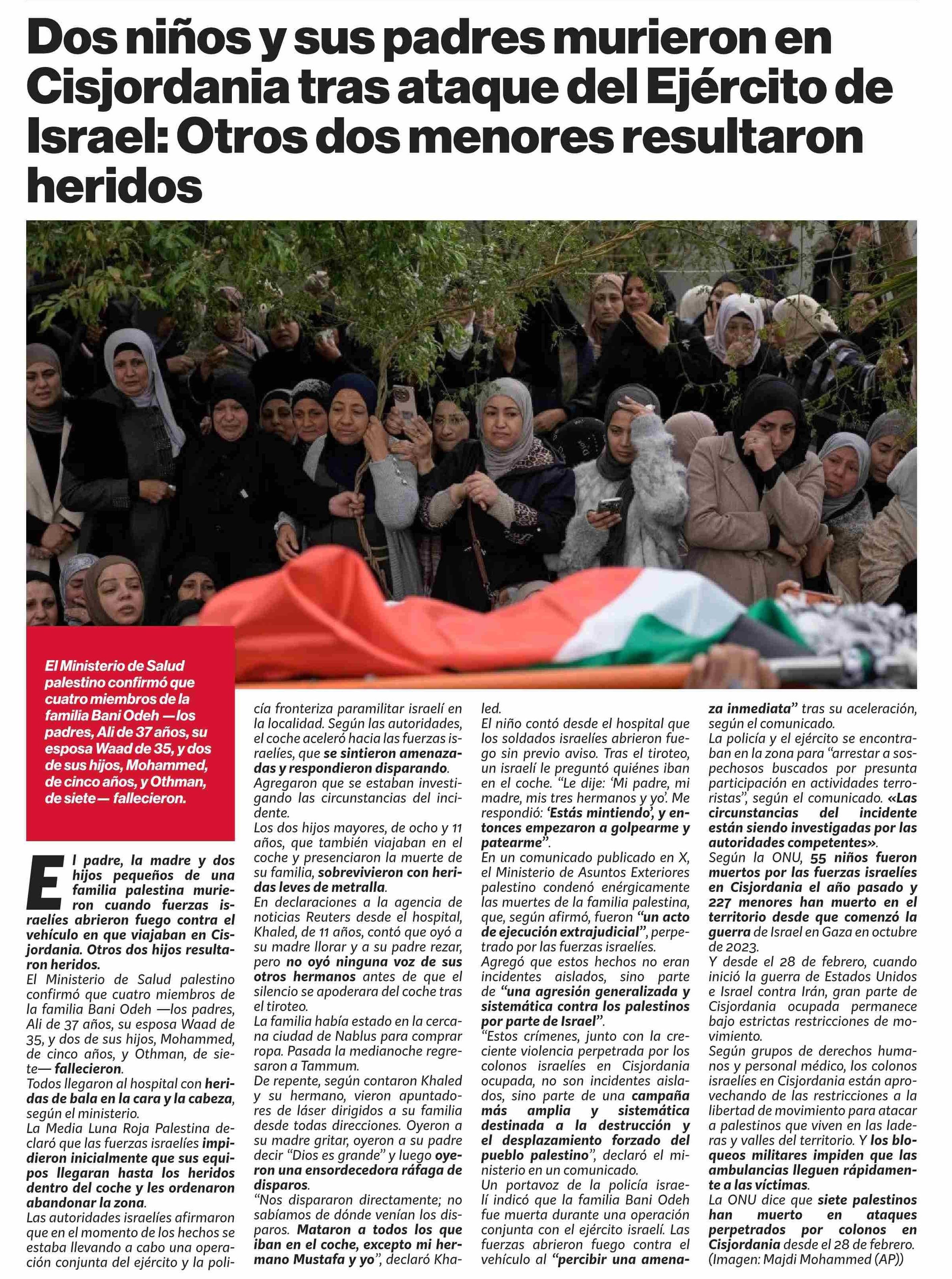 Título: Dos niños y sus padres murieron en Cisjordania tras ataque del Ejército de Israel: Otros dos menores resultaron heridos