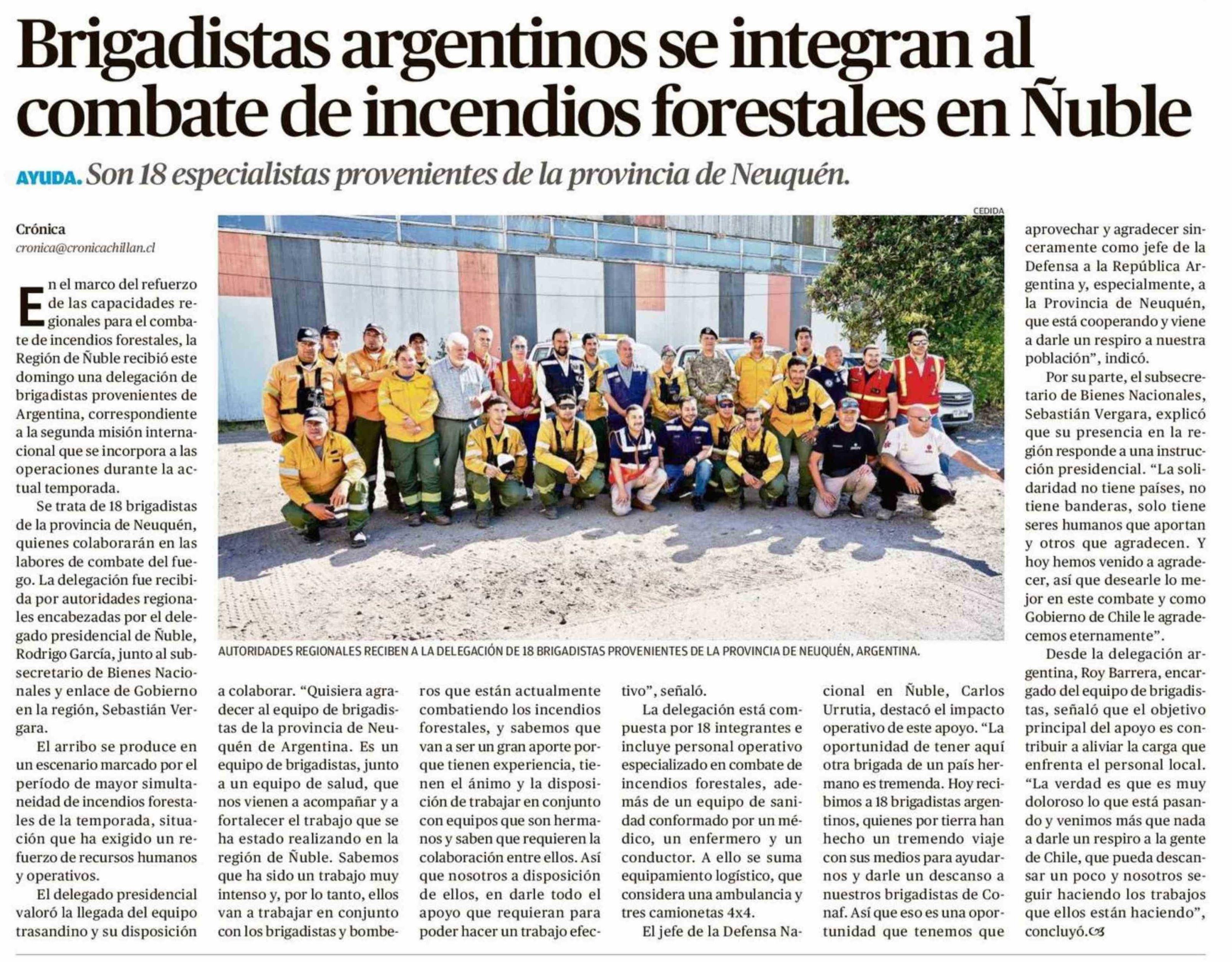 Título: Brigadistas argentinos se integran al combate de incendios forestales en Ñuble