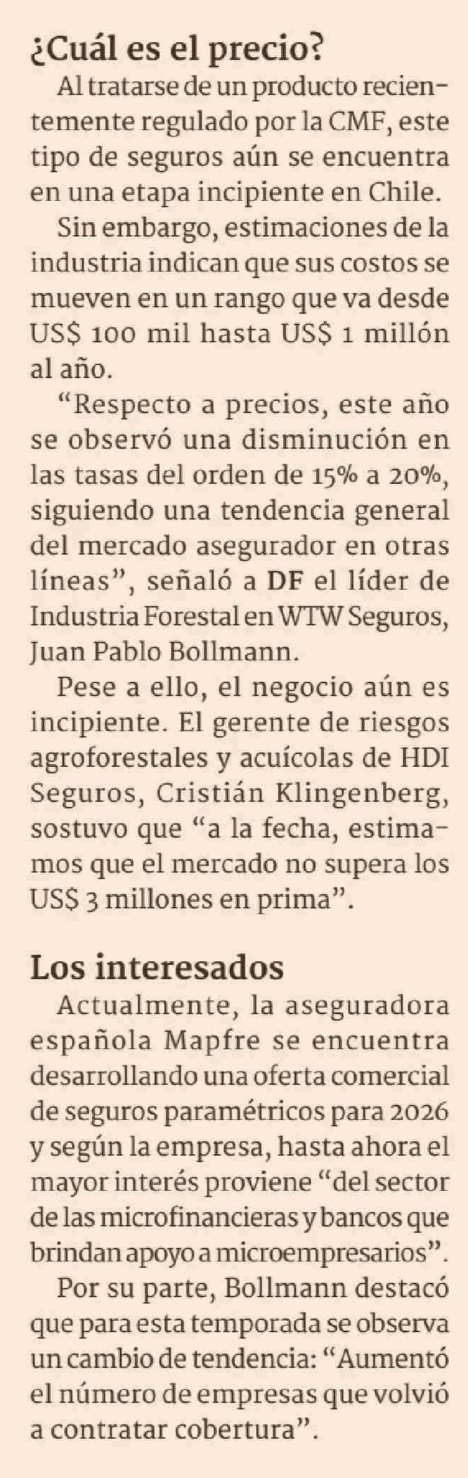 ¿Qué es y cuánto cuesta un seguro paramétrico? La póliza que cubre los mega incendios 15-01-2026 Diario Financiero |