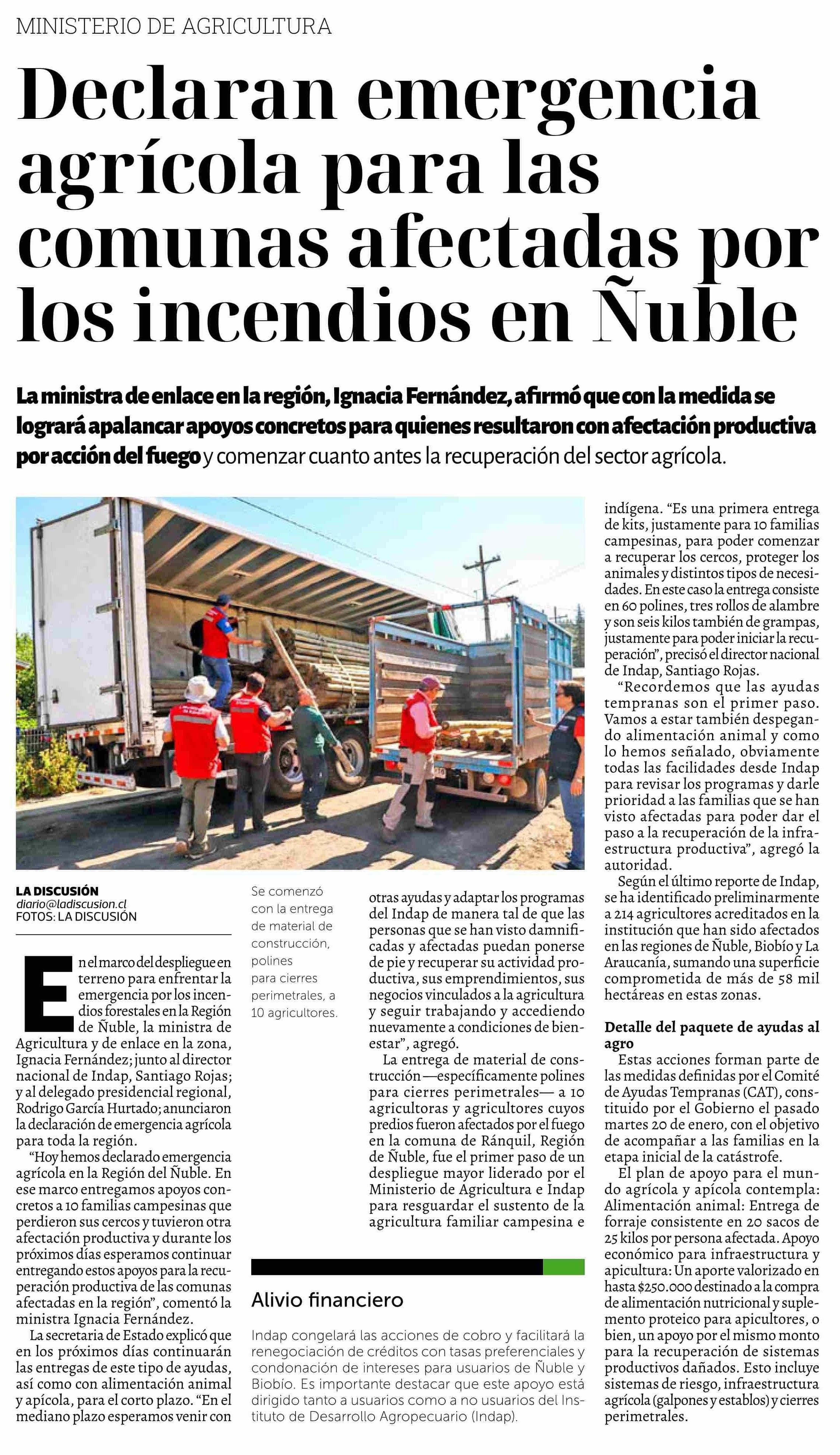 Declaran emergencia agrícola para las comunas afectadas por los incendios en Nuble 23-01-2026 La Discusión |
