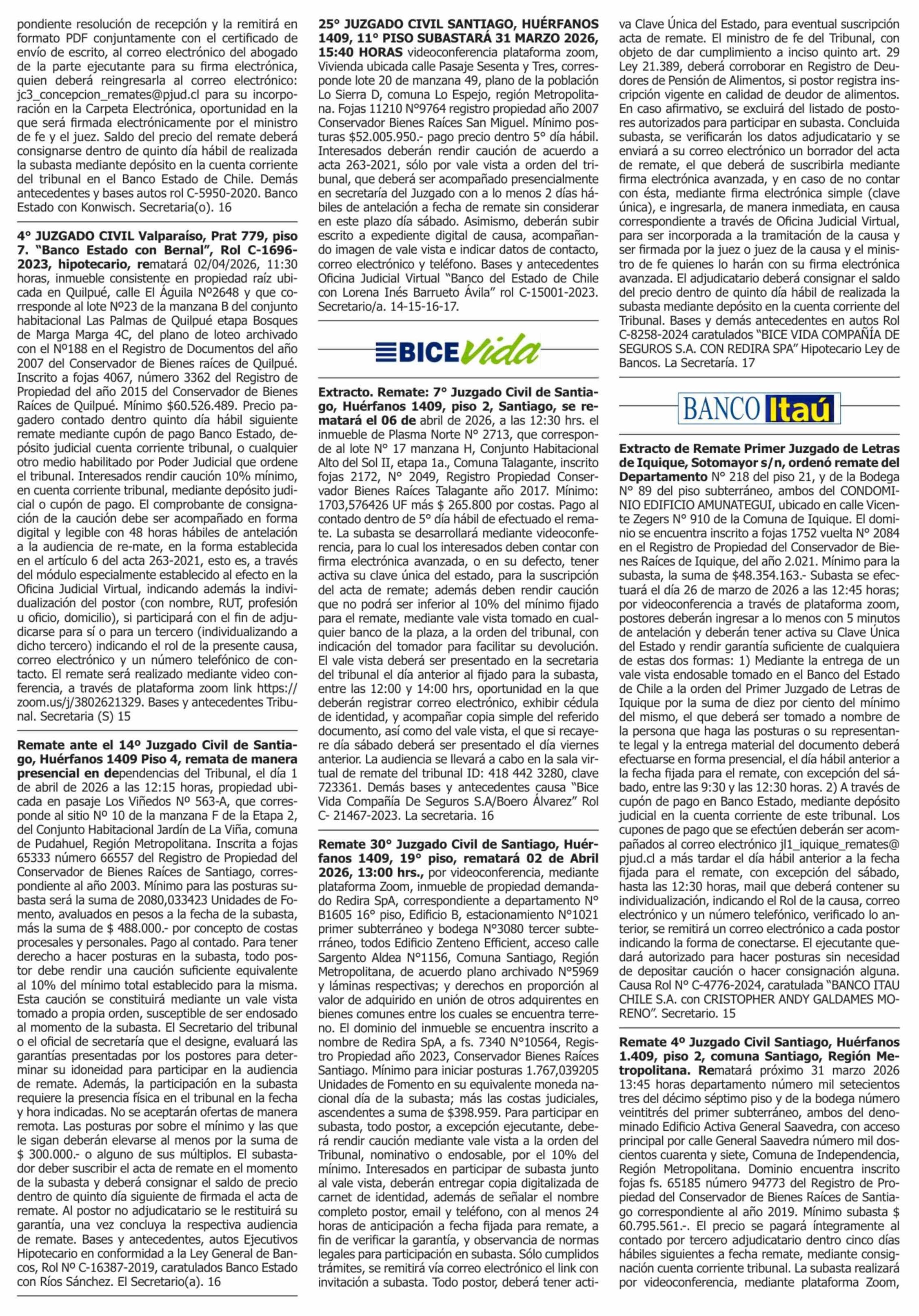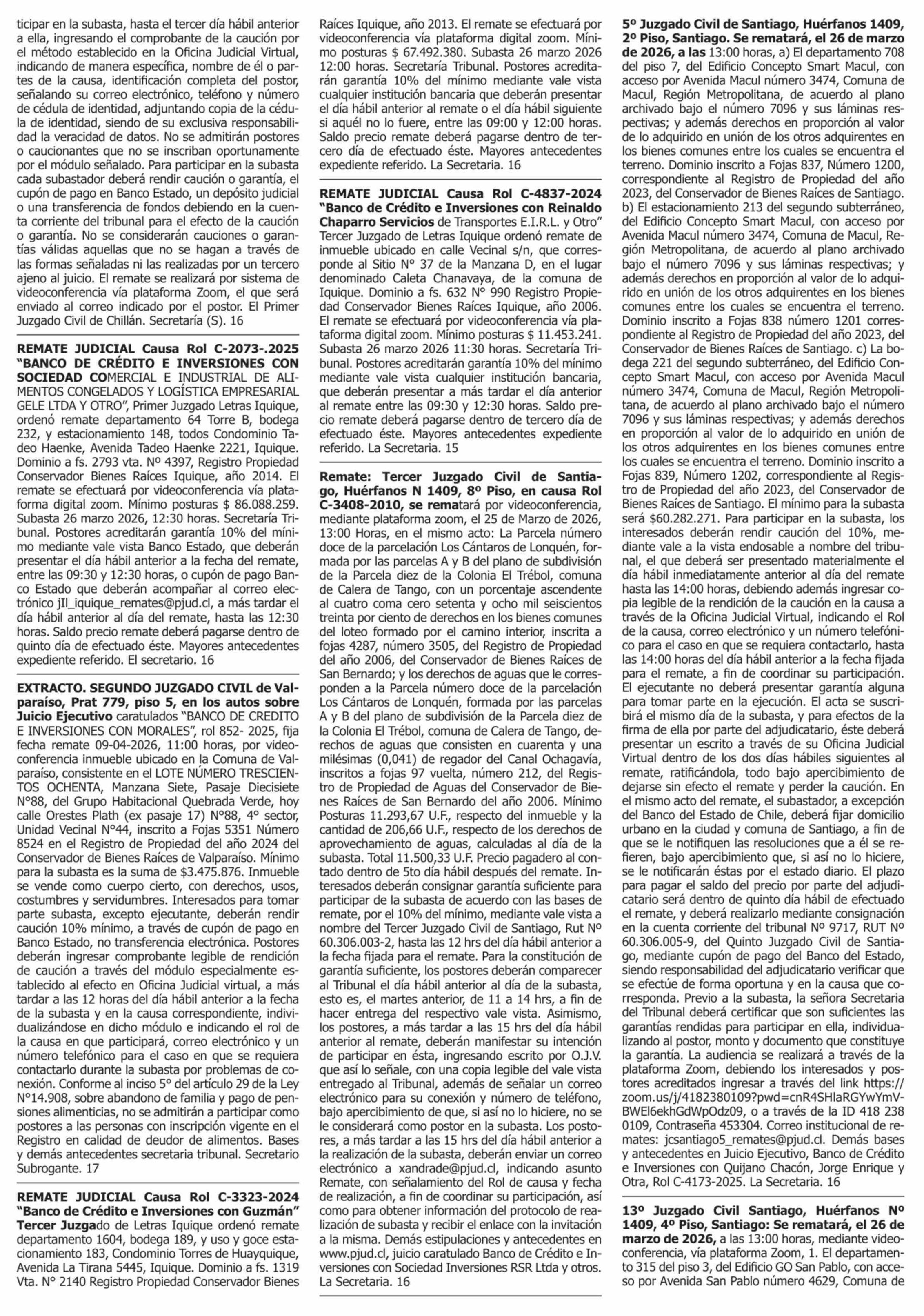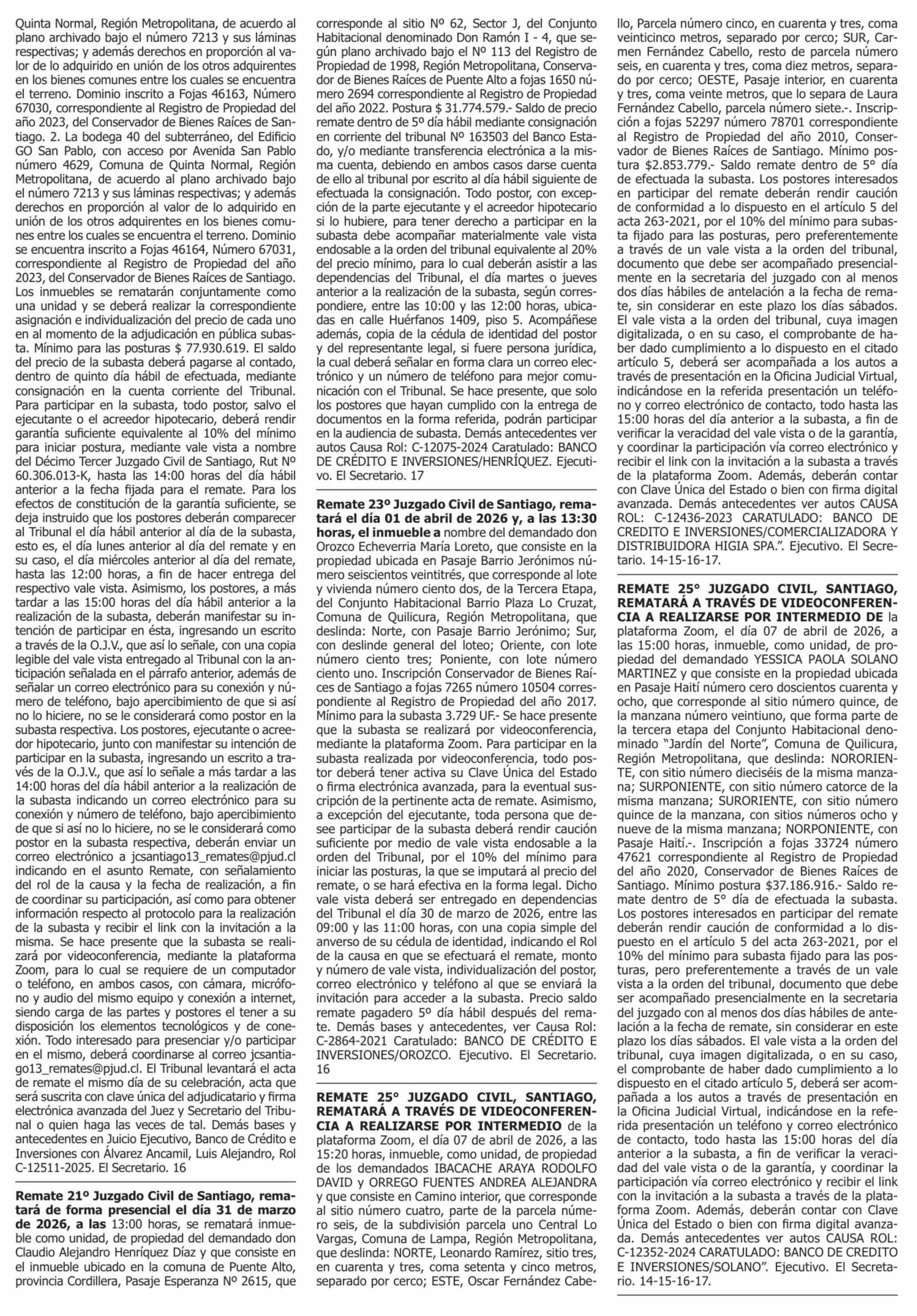 Fecha: 15-03-2026 Sector: Remates Región: Región Metropolitana de Santiago