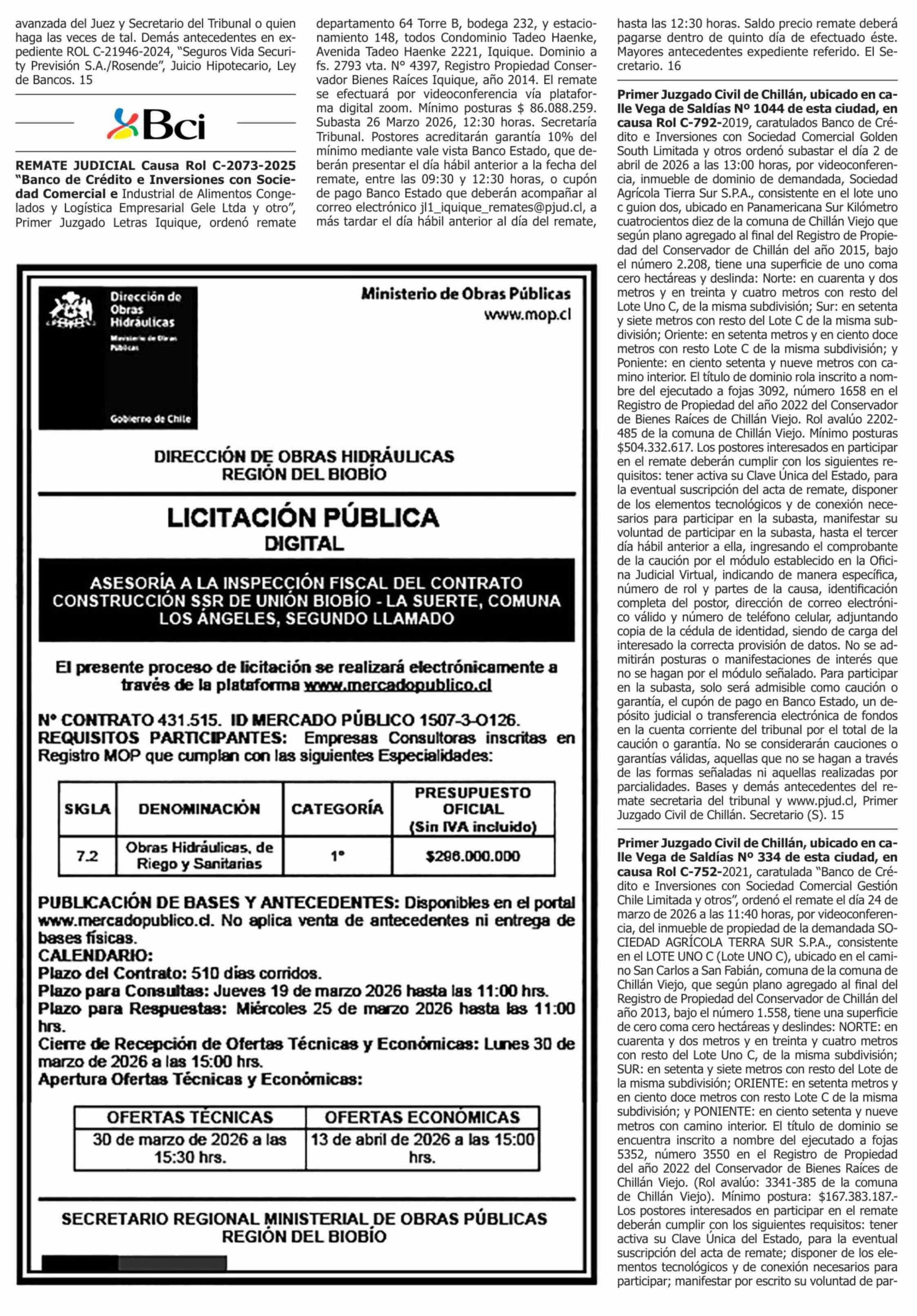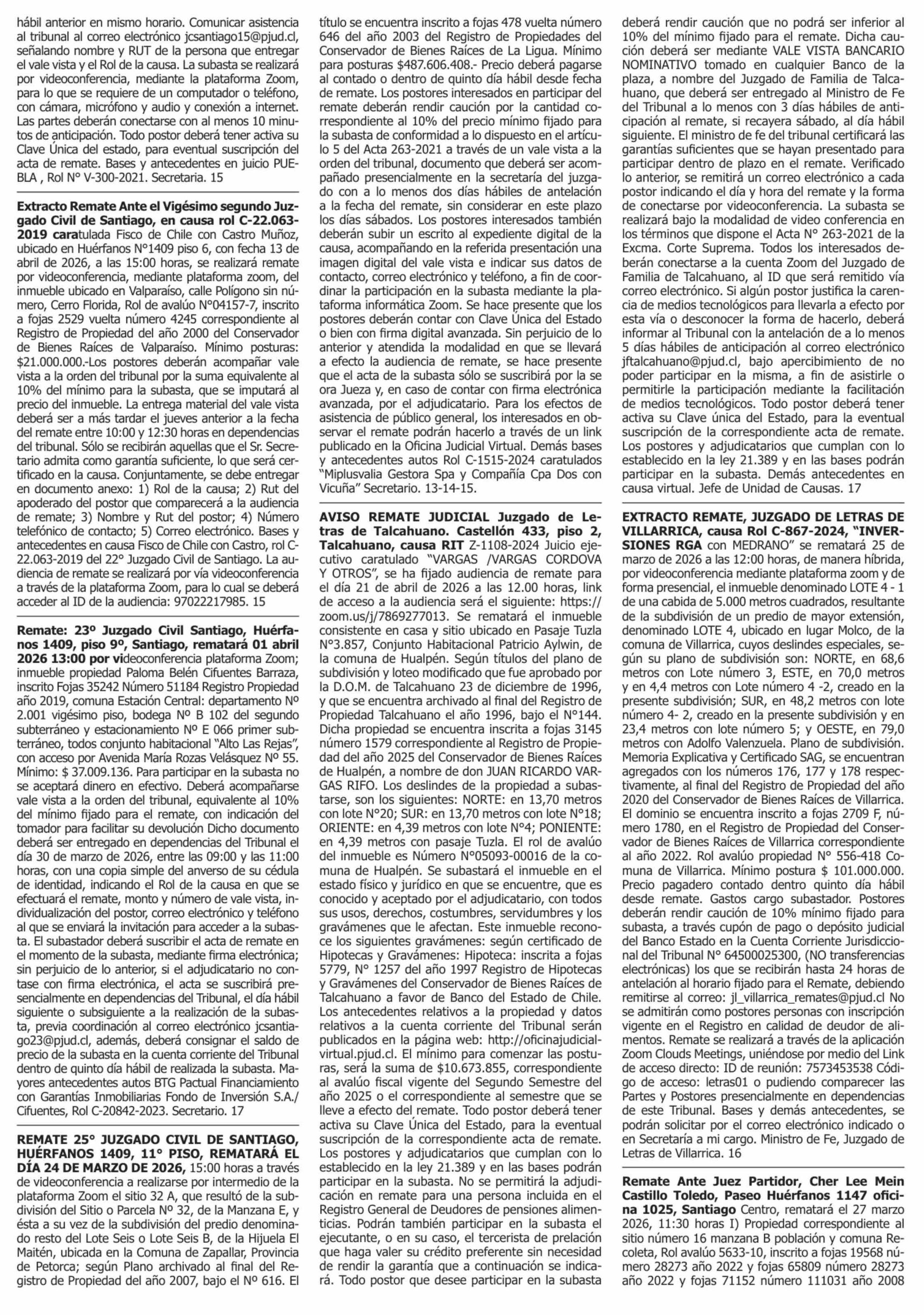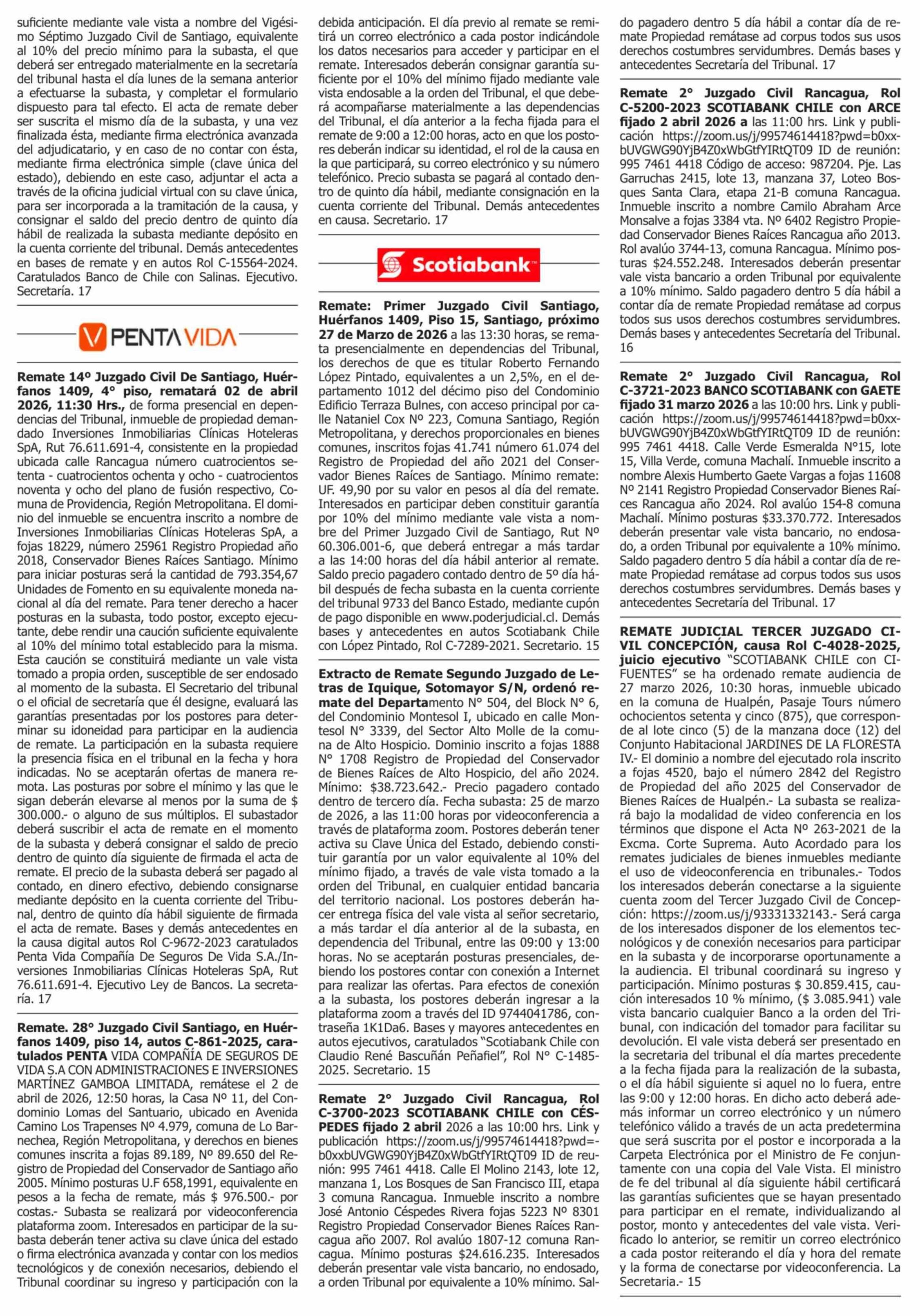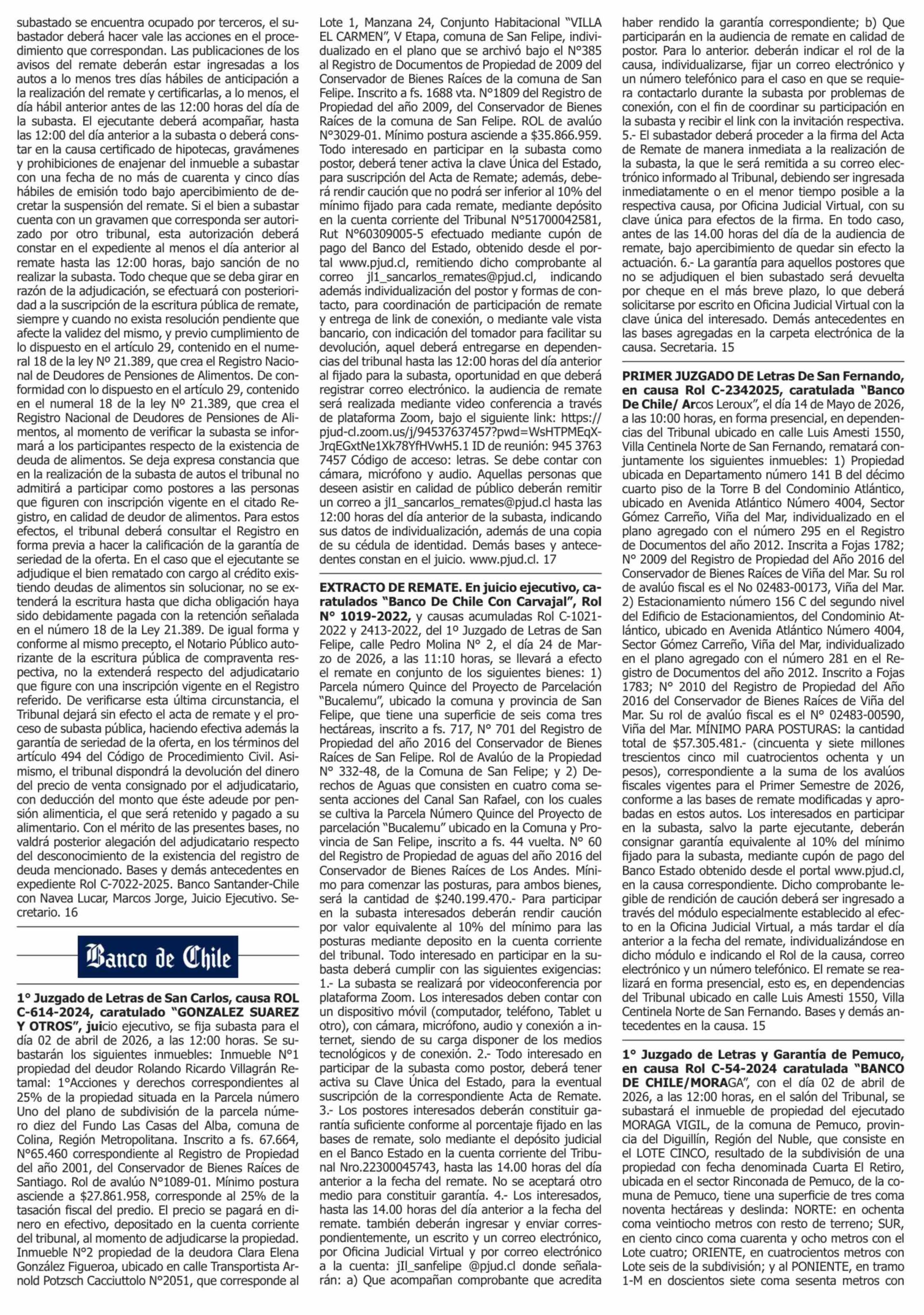 Fecha: 15-03-2026 Sector: Remates Región: Región Metropolitana de Santiago