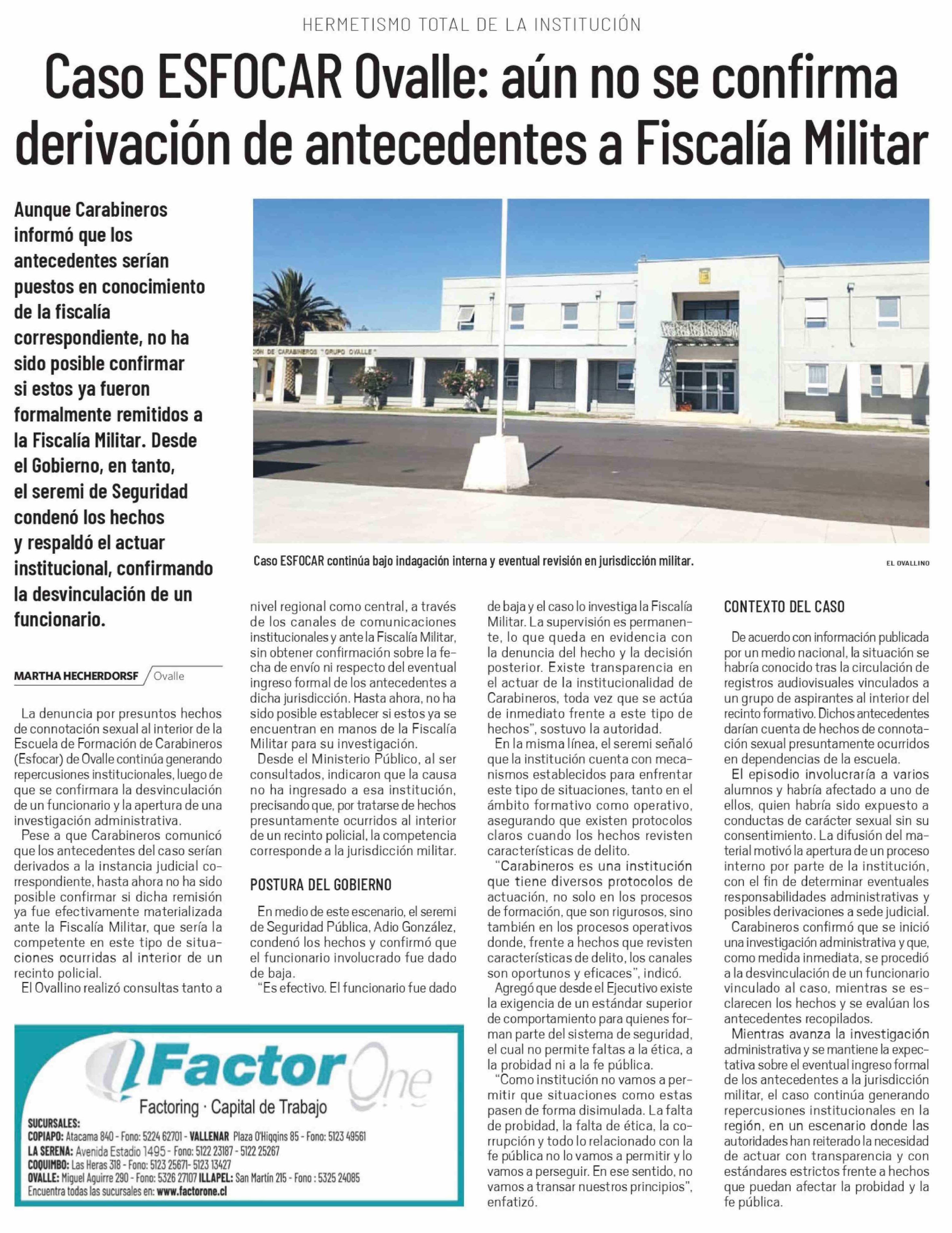 | Título: | Caso ESFOCAR Ovalle: aún no se confirma derivación de antecedentes a Fiscalía Militar |