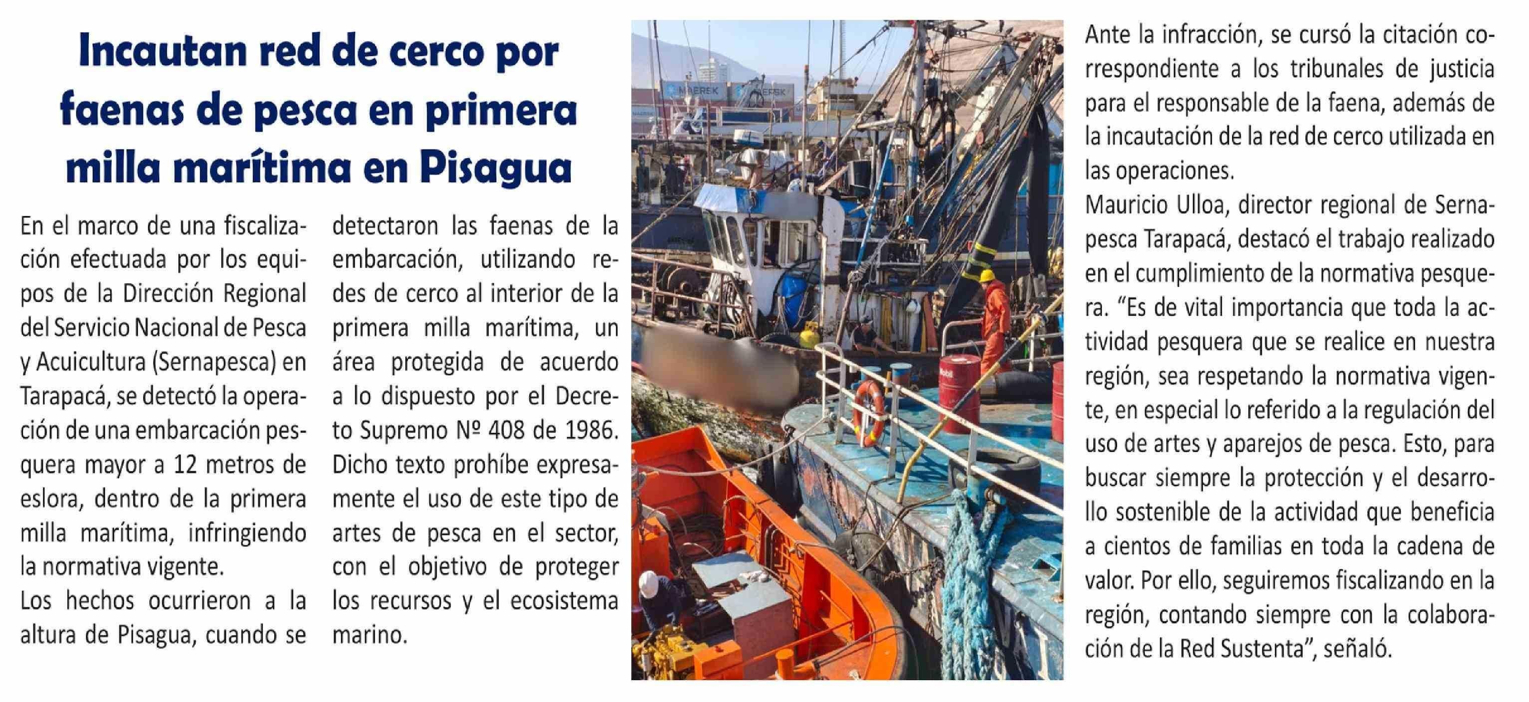 | Título: | Incautan red de cerco por faenas de pesca en primera milla marítima en Pisagua |