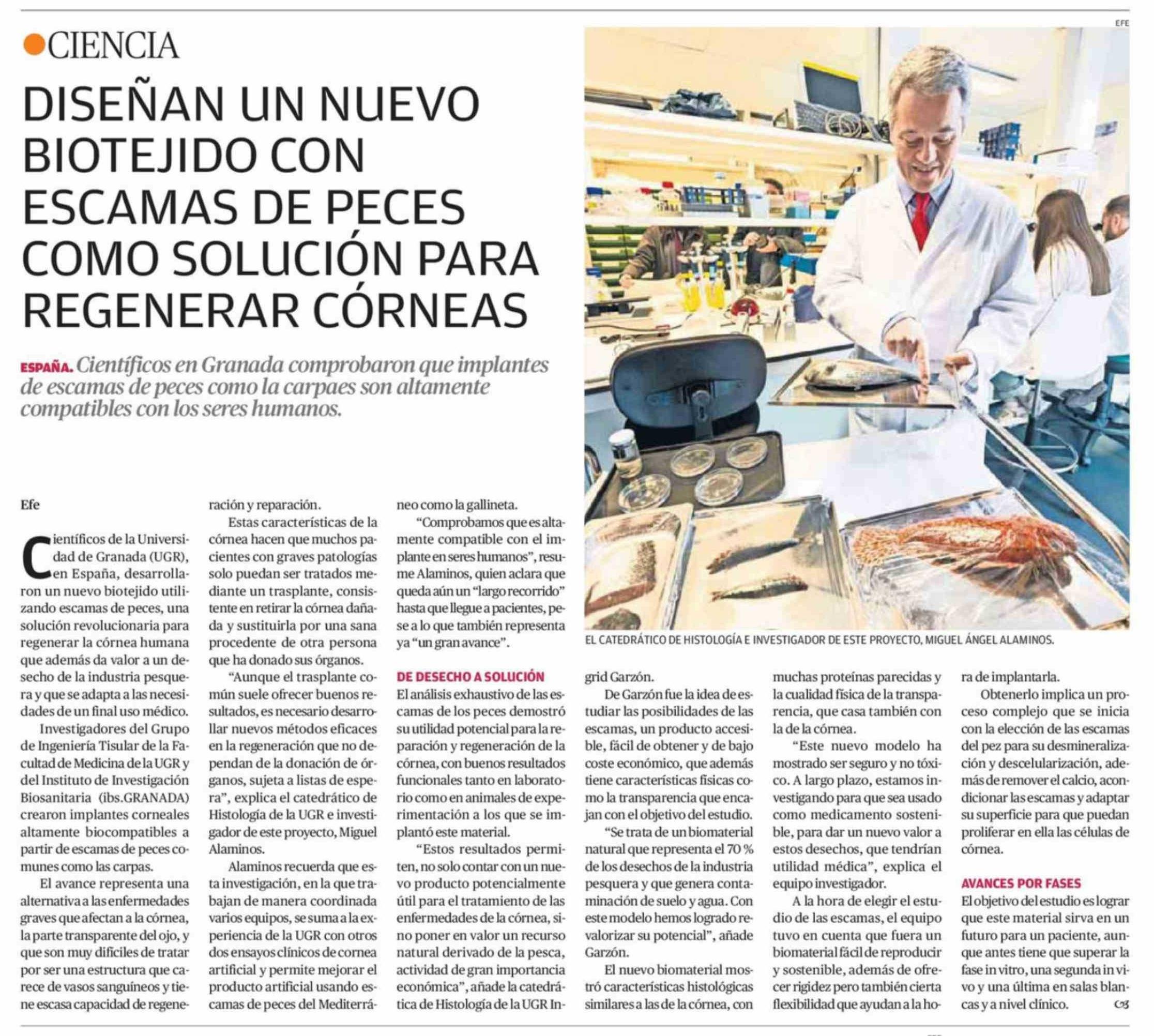Título: DISEÑAN UN NUEVO BIOTEJIDO CON ESCAMAS DE PECES COMO SOLUCIÓN PARA REGENERAR CÓRNEAS