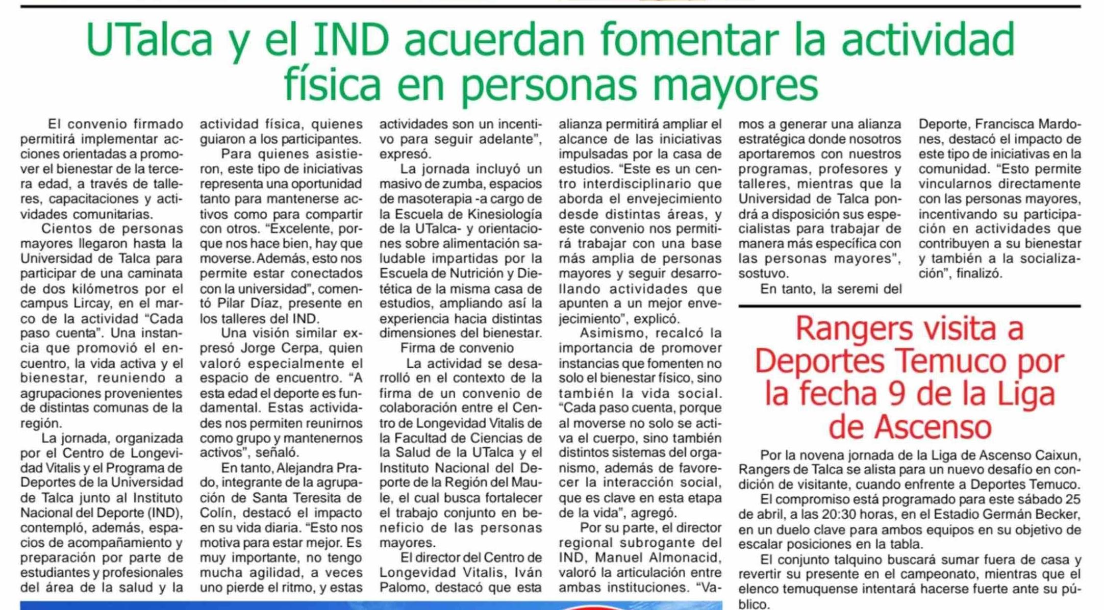 Título: UTalca y el IND acuerdan fomentar la actividad física en personas mayores