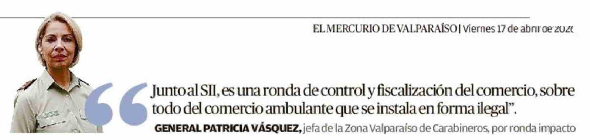 GENERAL PATRICIA VÁSQUEZ, jefa de la Zona Valparaíso de Carabineros, por ronda impacto 17-04-2026 El Mercurio de Valparaíso |