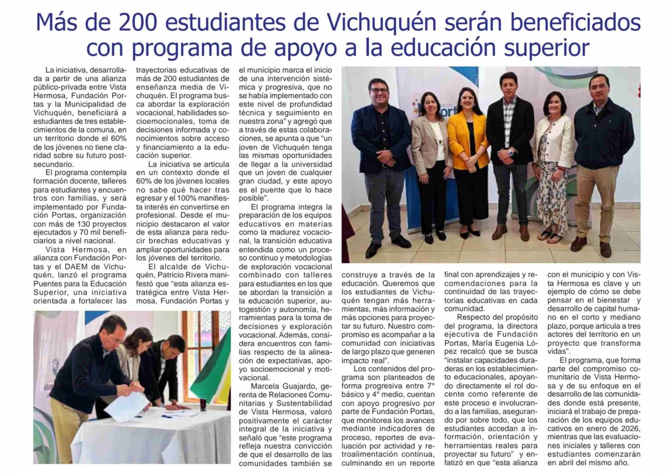 Más de 200 estudiantes de Vichuquén serán beneficiados con programa de apoyo a la educación superior 15-01-2026 Maule Hoy |