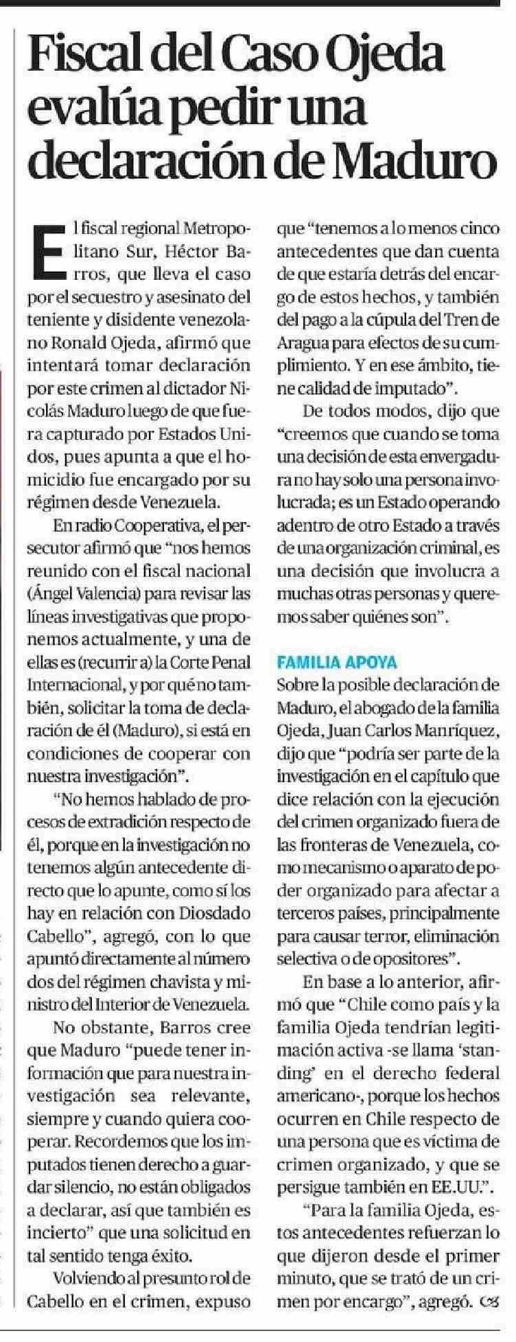 Título: Fiscal del Caso Ojeda evalúa pedir una declaración de Maduro