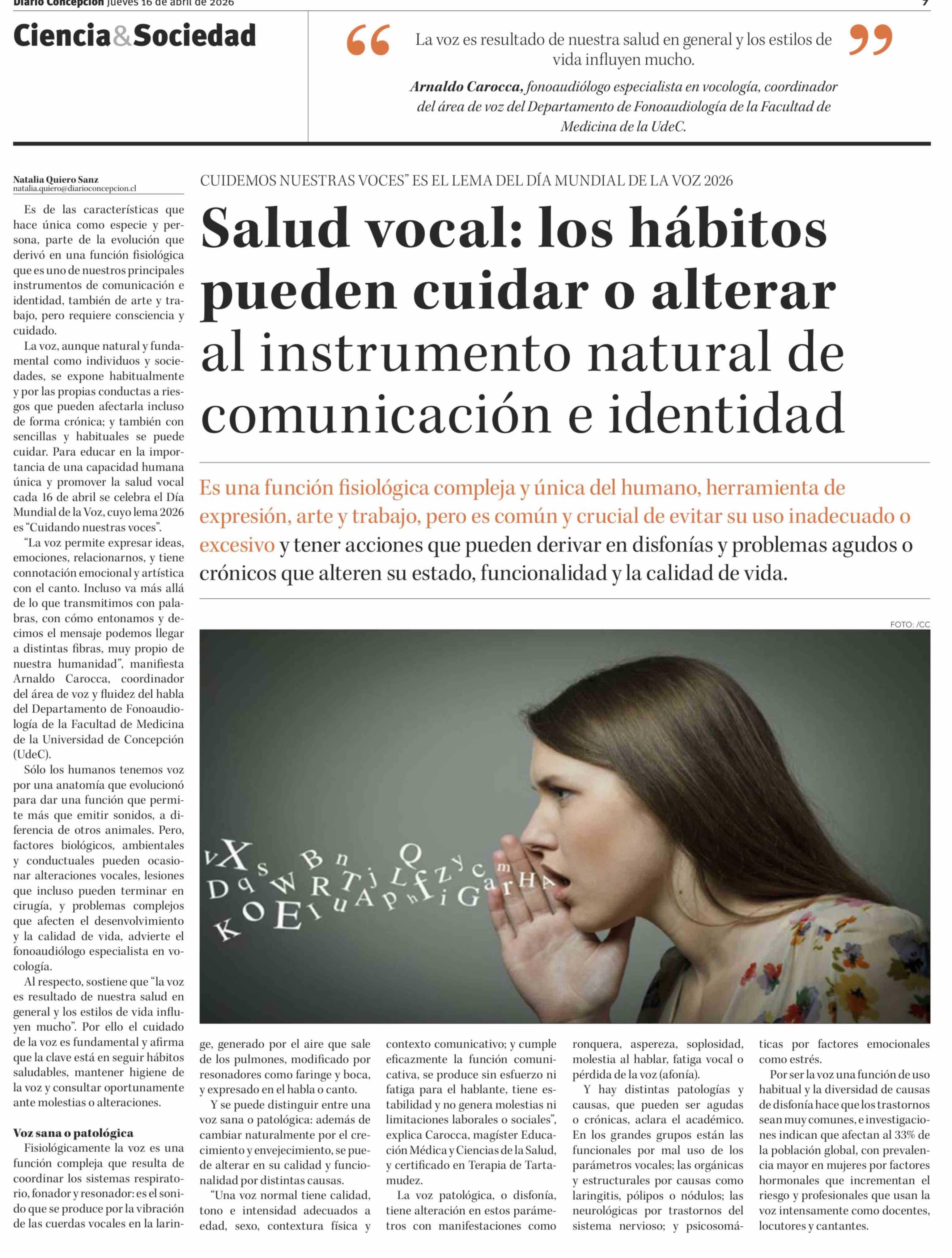 Salud vocal: los hábitos pueden cuidar o alterar al instrumento natural de comunicación e identidad 16-04-2026 Diario Concepción |