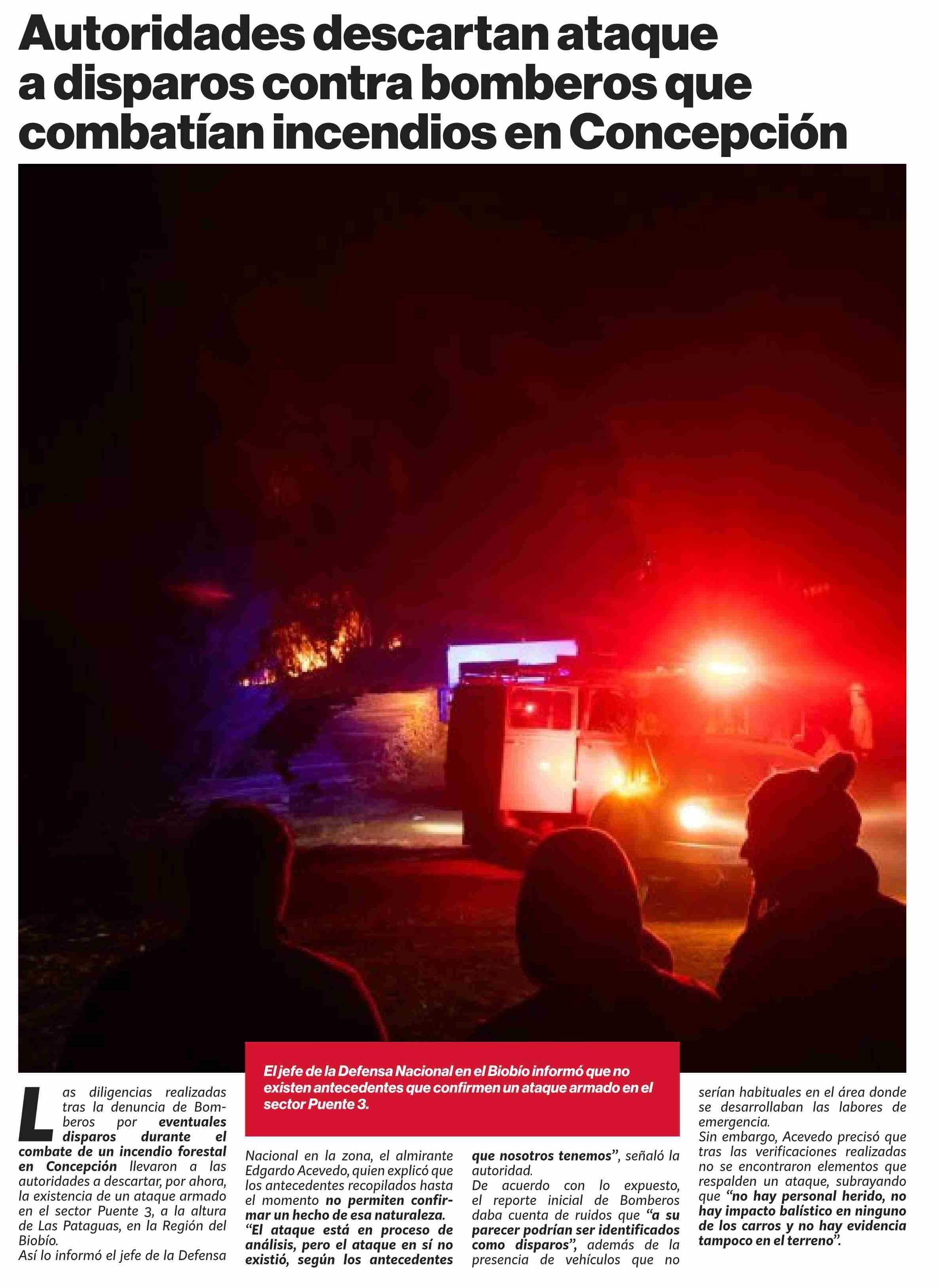 | Título: | Autoridades descartan ataque a disparos contra bomberos que combatían incendios en Concepción |