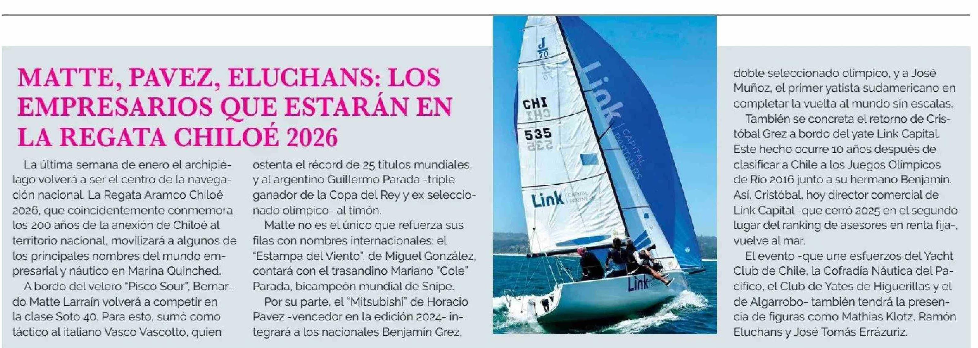 MATTE, PAVEZ, ELUCHANS: LOS EMPRESARIOS QUE ESTARÁN EN LA REGATA CHILOÉ 2026 25-01-2026 Diario Financiero |