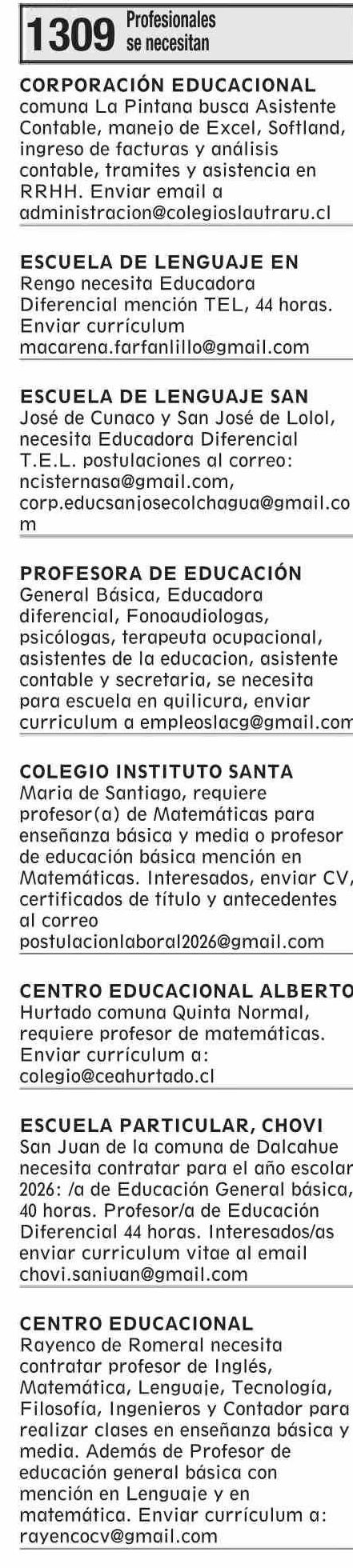 AVISO LICITACIONES: Área Educación 04-02-2026 El Mercurio |