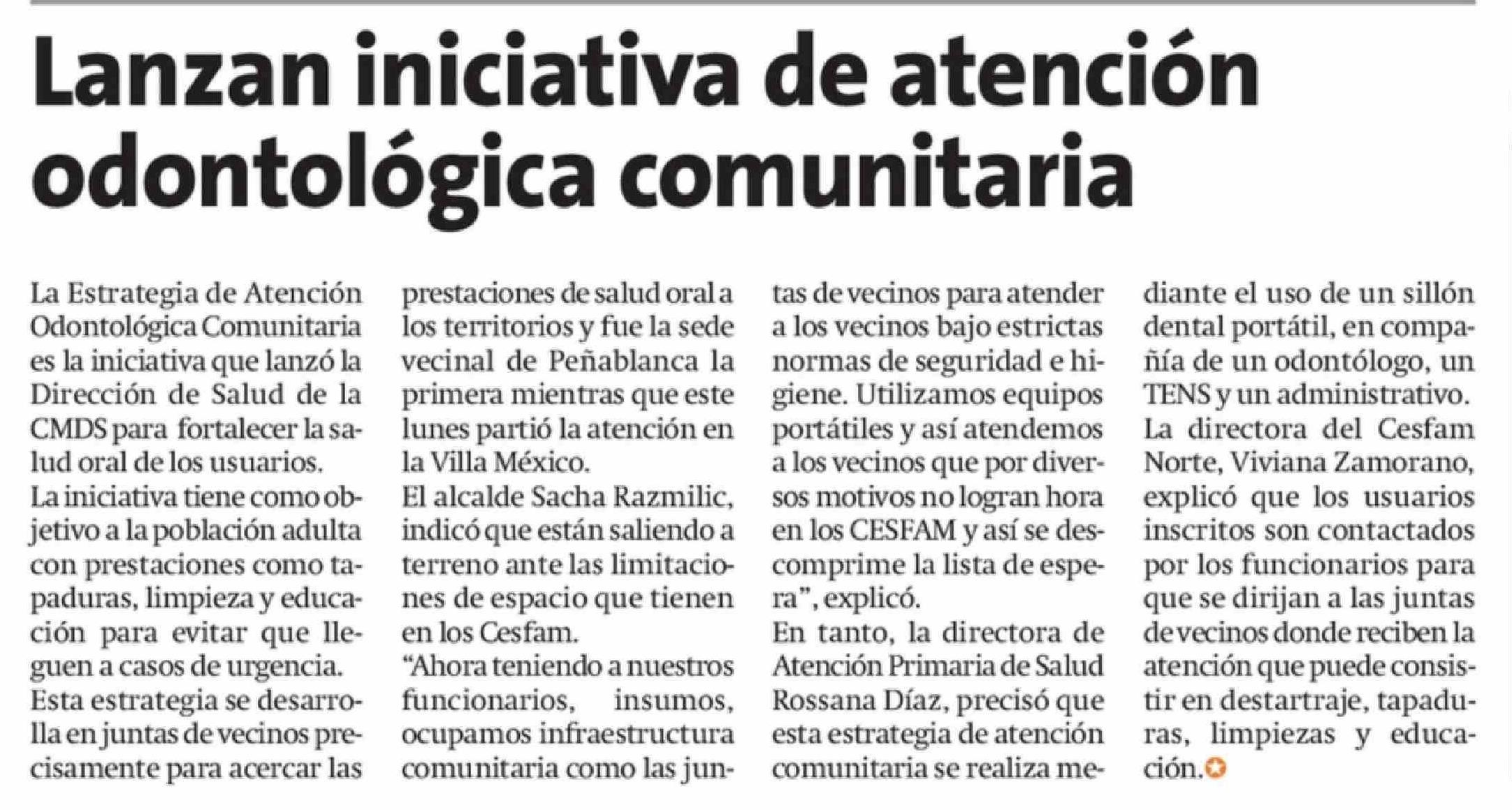 Título: Lanzan iniciativa de atención odontológica comunitaria