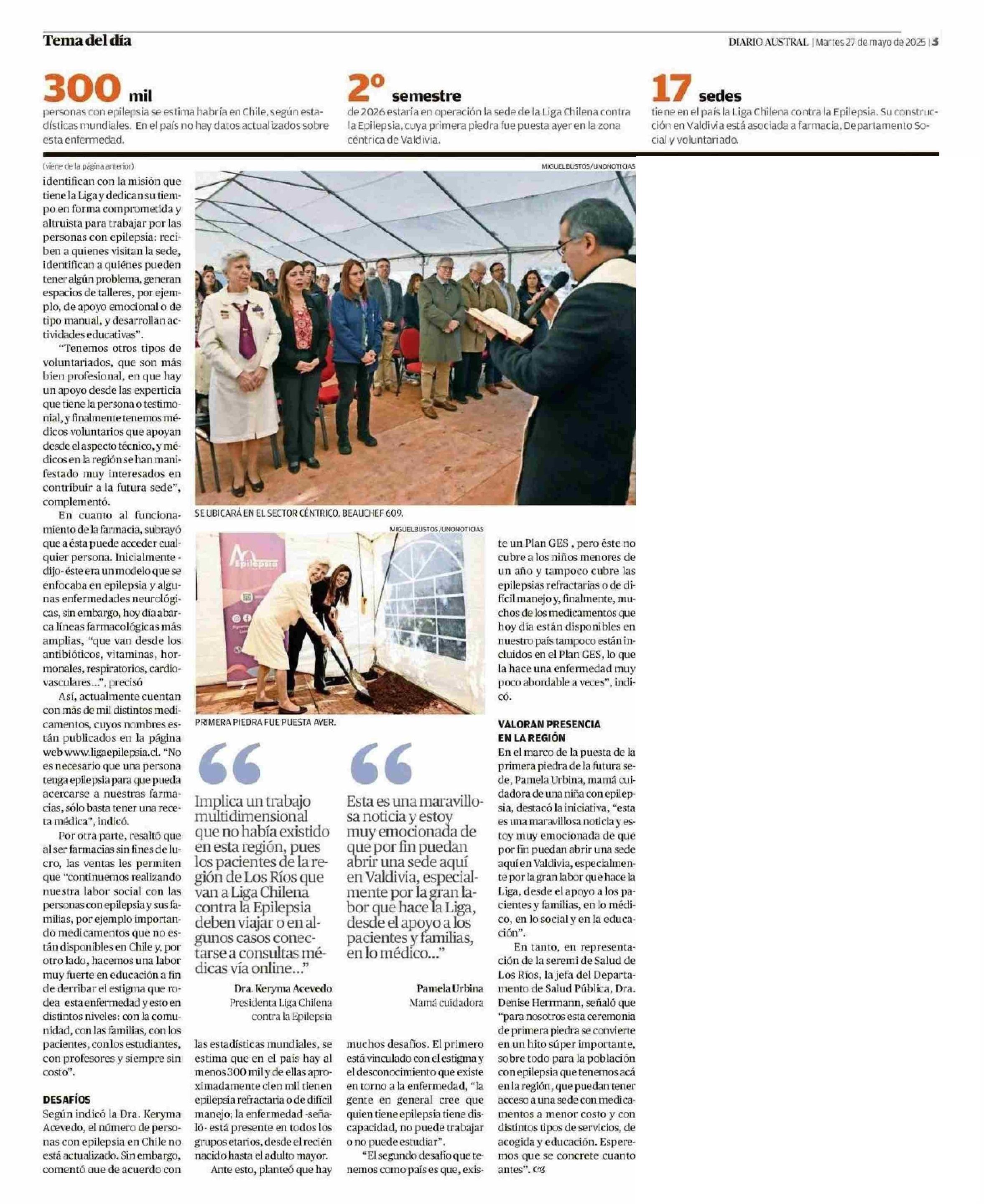 En Valdivia inician obras de sede de Liga Chilena contra la Epilepsia 27-05-2025 Diario Austral Región de Los Ríos |