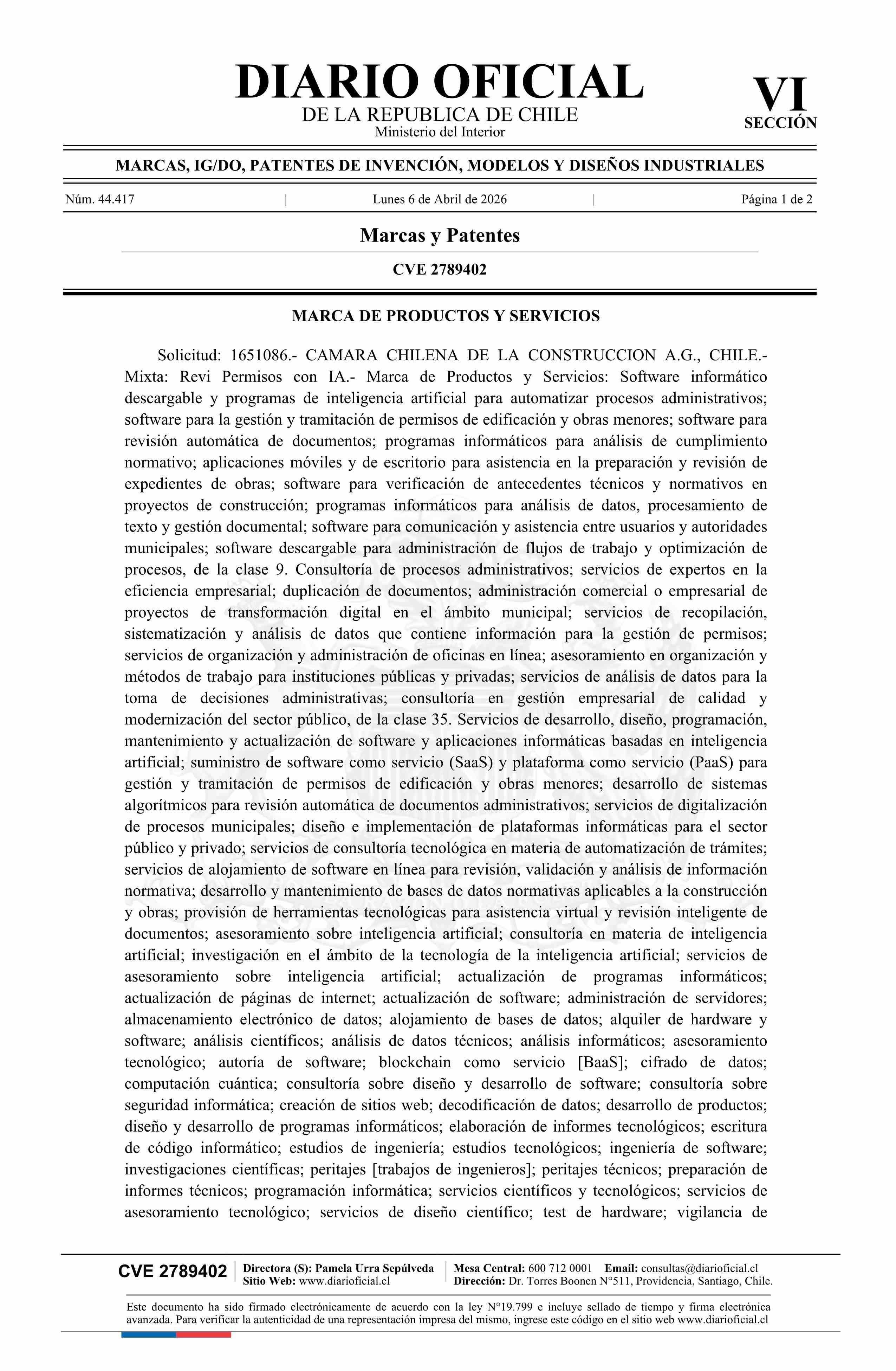 Solicitud número 1651086.- Revi Permisos con IA 06-04-2026 Diario Oficial Edición Electrónica |