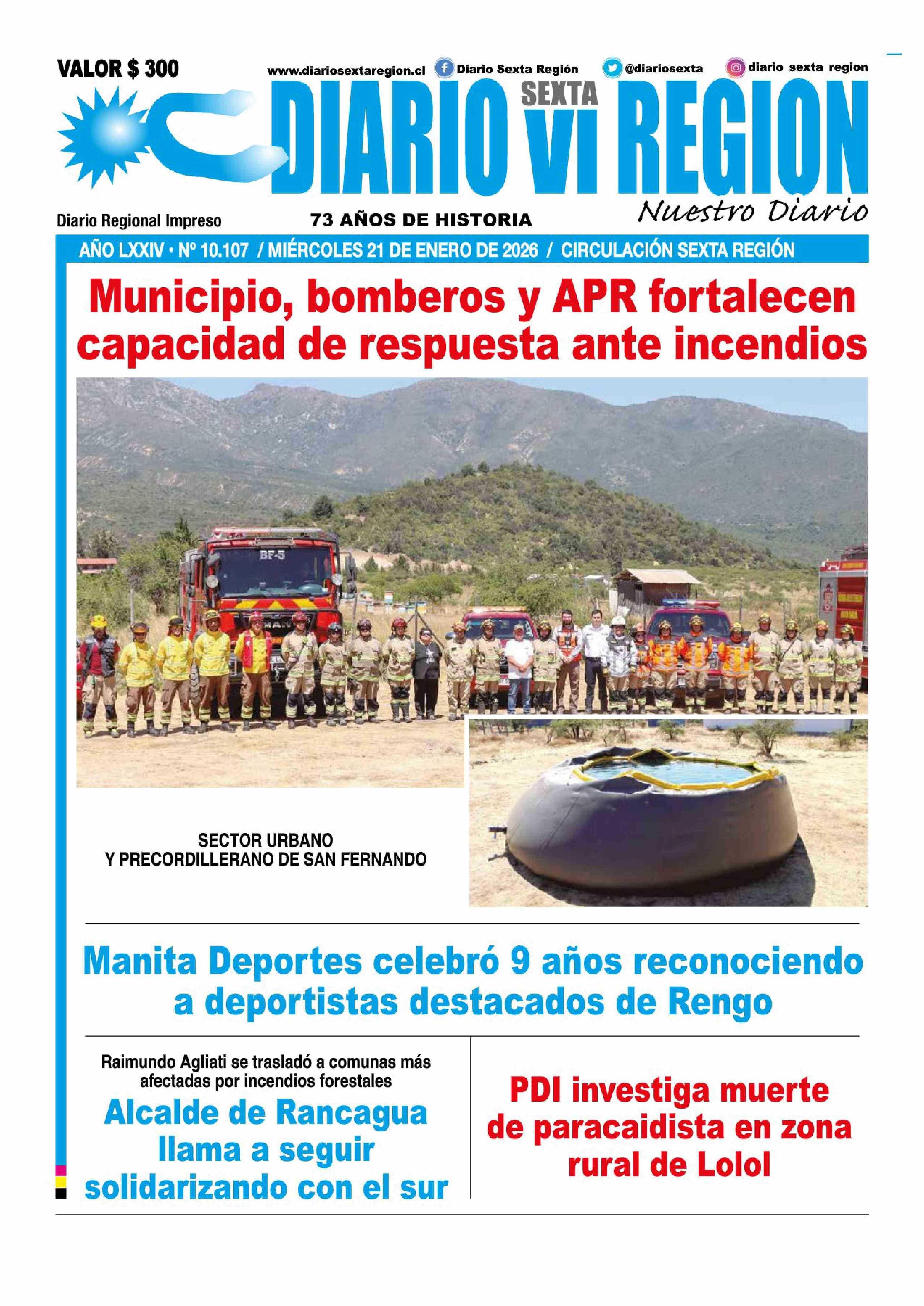 | Fecha: | 21-01-2026 | Sector: | Portada | Región: | Región del Libertador General Bernardo O'Higgins |