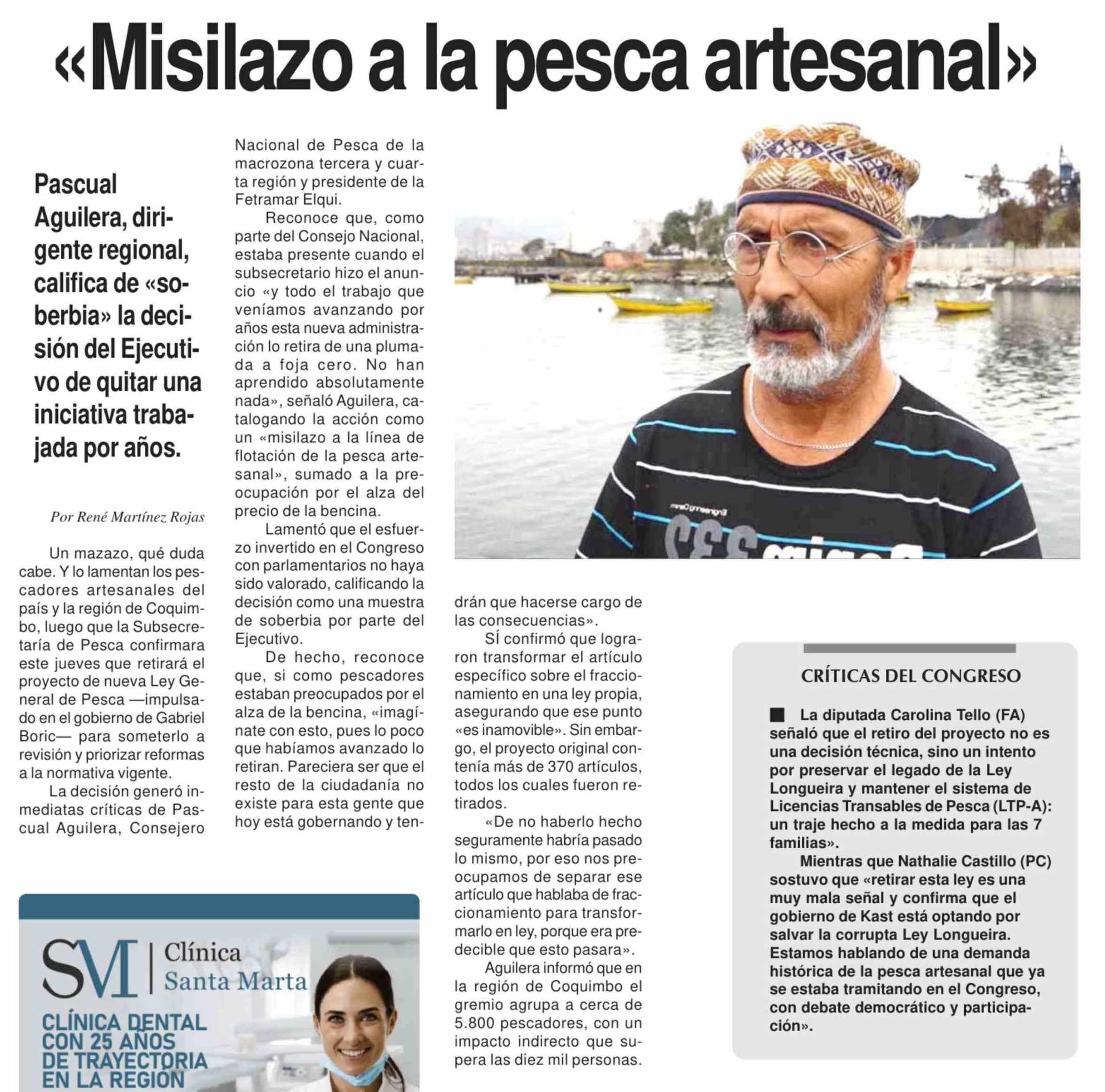«Misilazo a la pesca artesanal» 27-03-2026 Diario la Región |