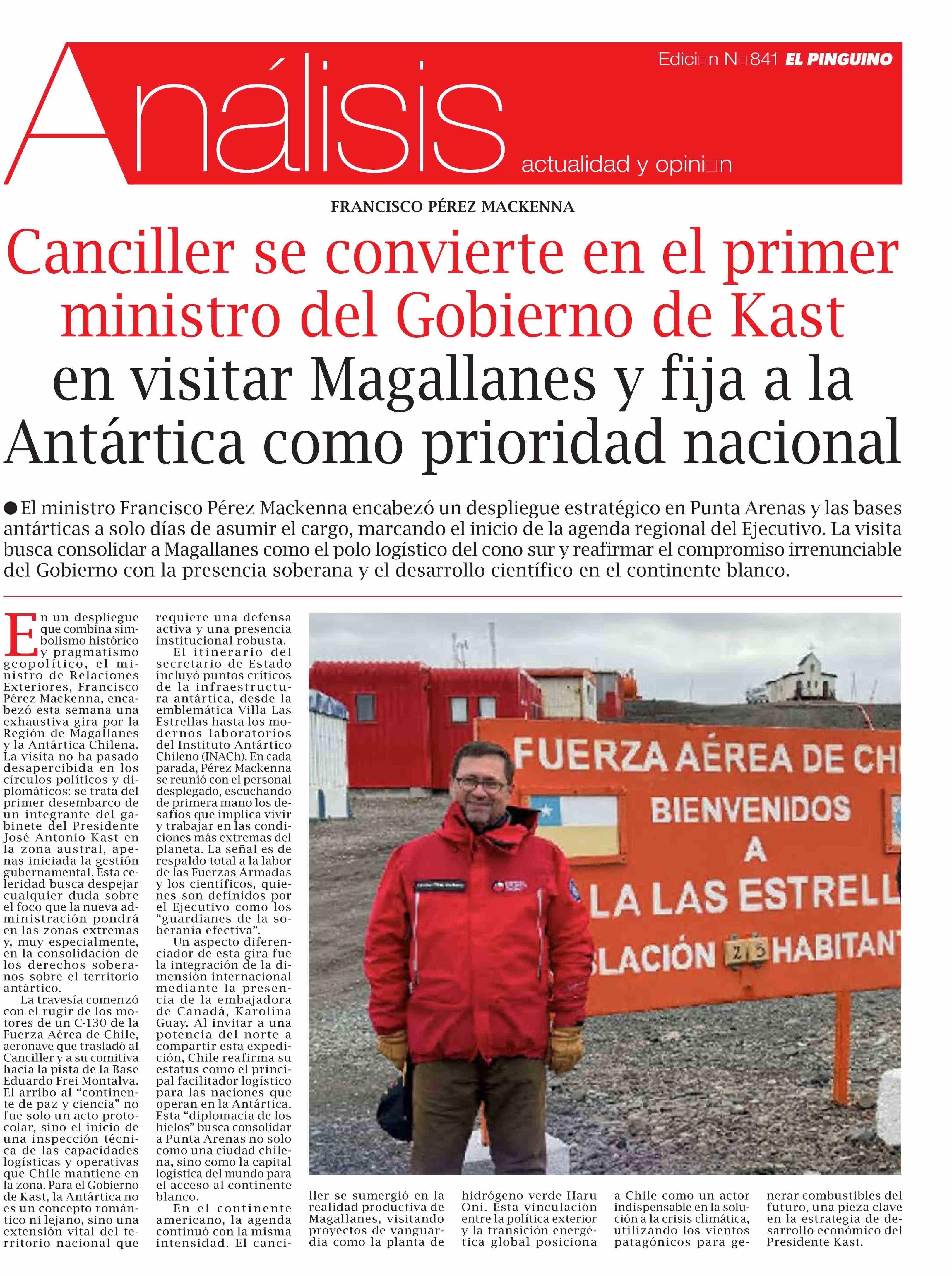 | Título: | Canciller se convierte en el primer ministro del Gobierno de Kast en visitar Magallanes y fija a la Antártica como prioridad nacional |