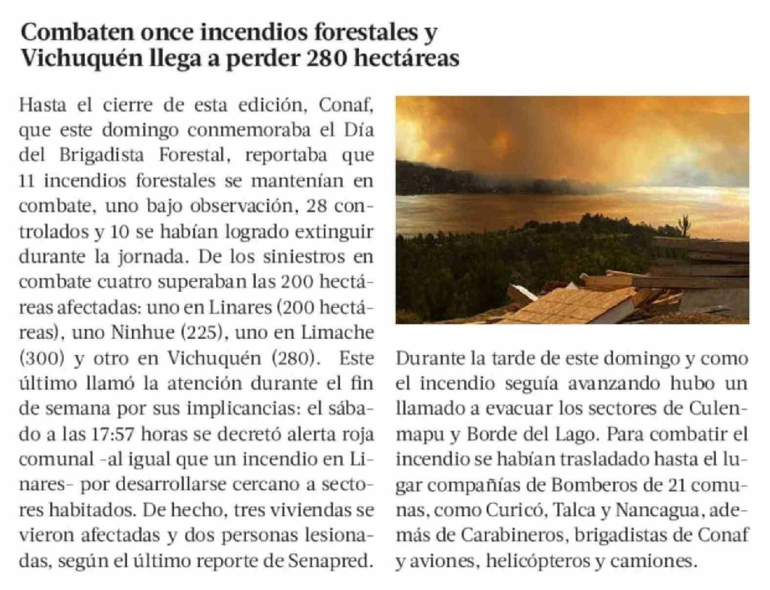 Título: Combaten once incendios forestales y Vichuquén llega a perder 280 hectáreas