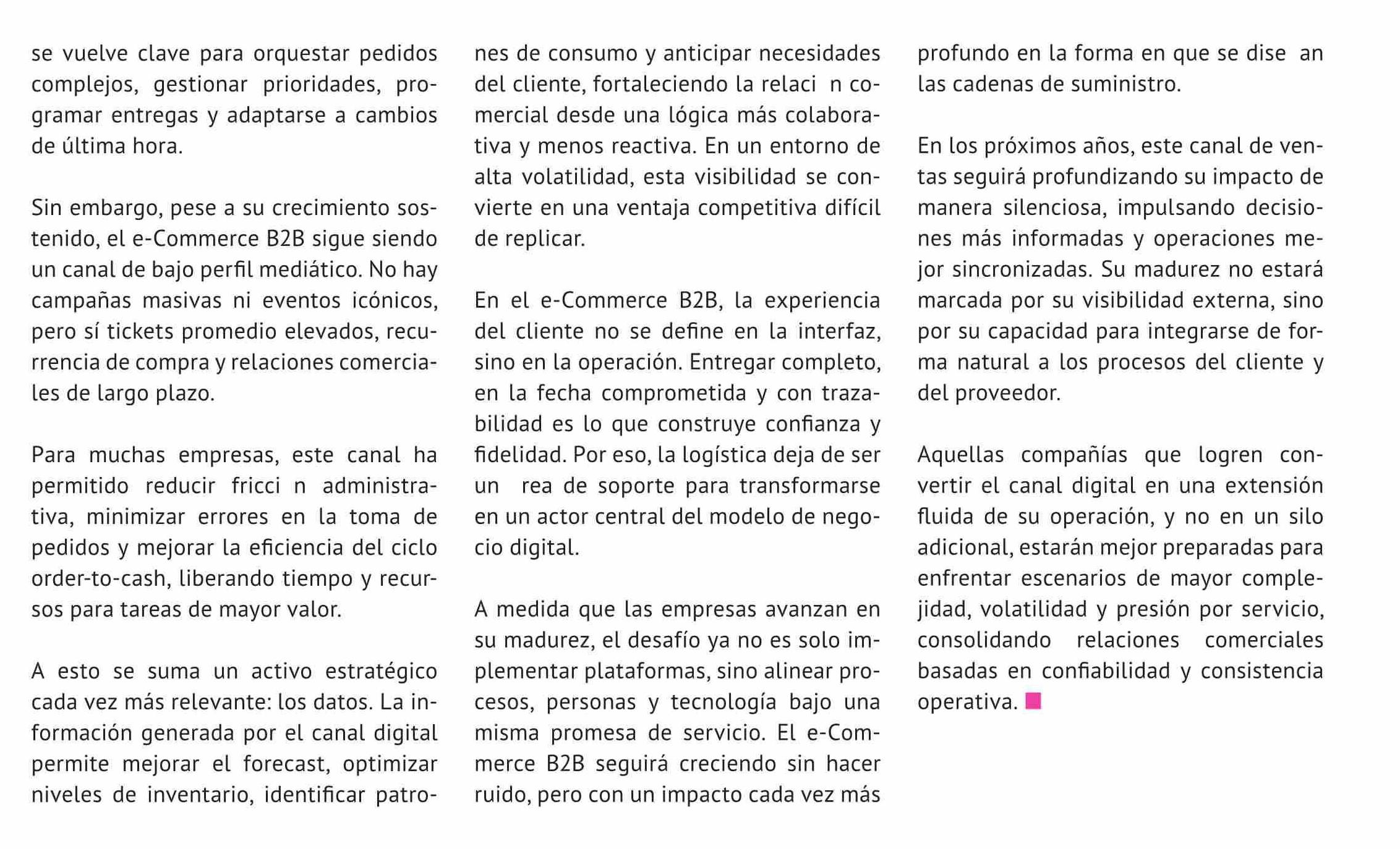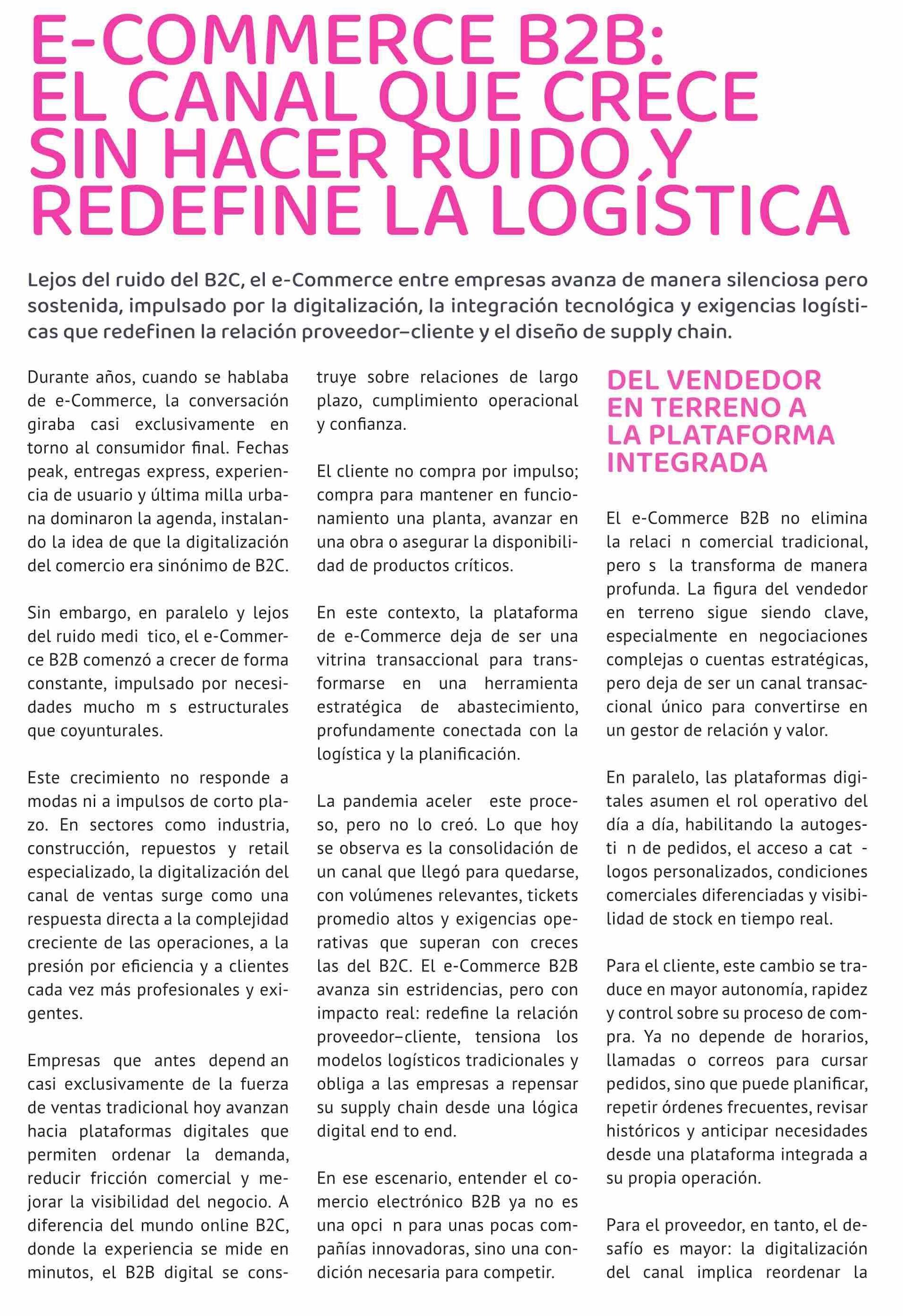 | Título: | E-COMMERCE B2B: EL CANAL QUE CRECE SIN HACER RUIDO Y REDEFINE LA LOGISTICA |