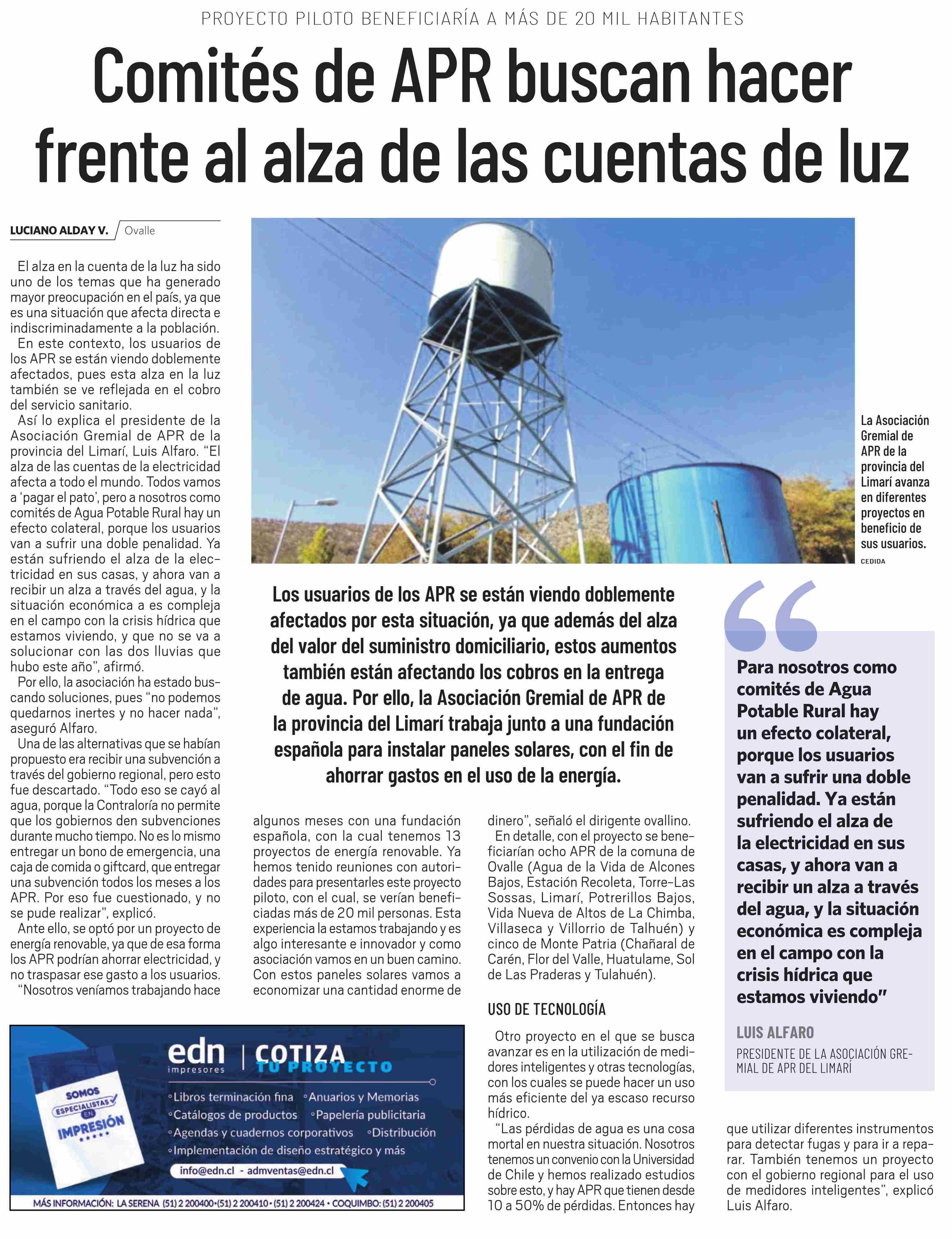 Comités de APR buscan hacer frente al alza de las cuentas de luz 10-10-2024 El Día |