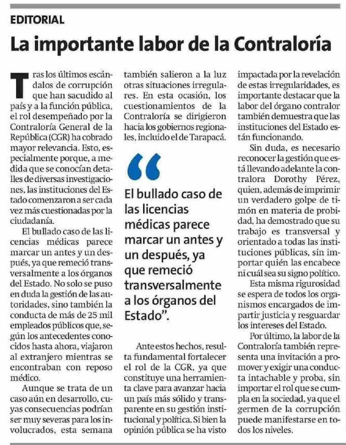 Editorial: La importante labor de la Contraloría 06-06-2025 La Estrella de Iquique |