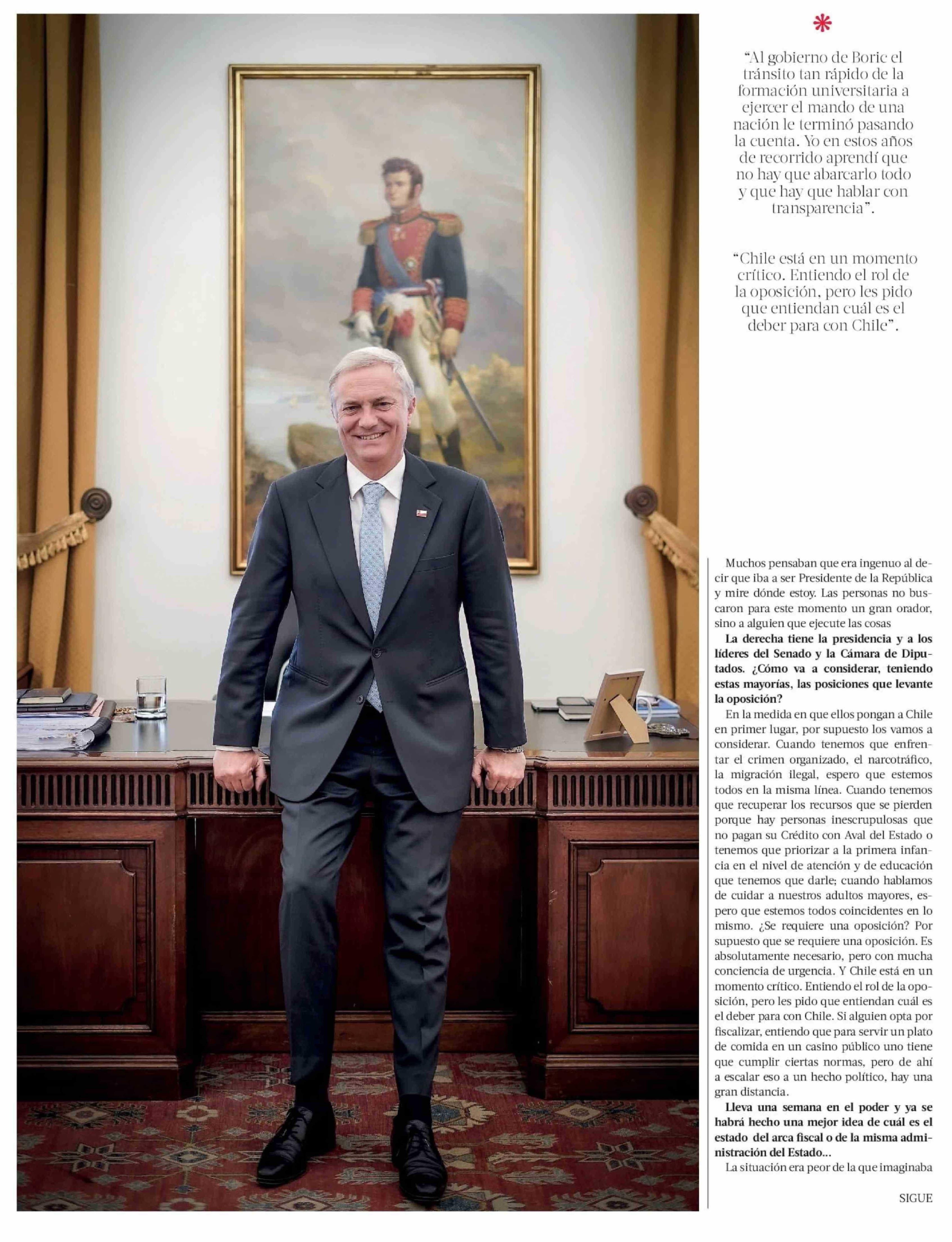 José Antonio Kast: "Vamos a tomar decisiones difíciles, con transparencia, y no vamos a retroceder" 22-03-2026 La Tercera |