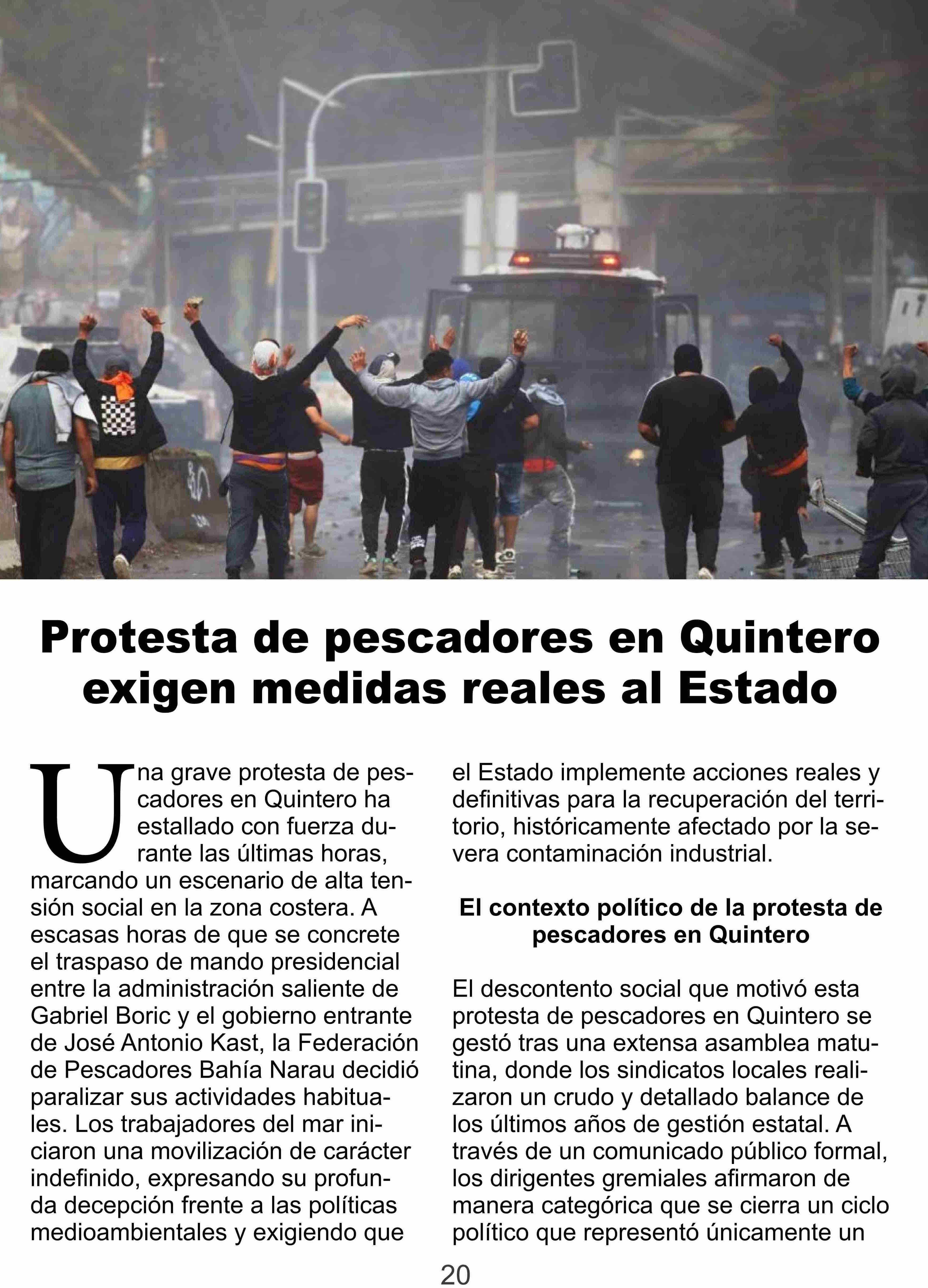 Título: Protesta de pescadores en Quintero exigen medidas reales al Estado