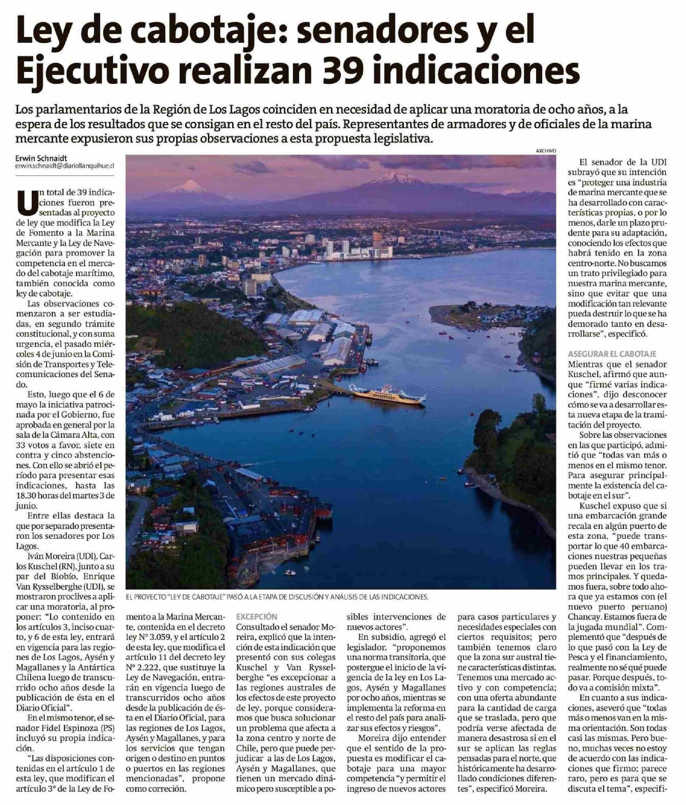 Ley de cabotaje: senadores y el Ejecutivo realizan 39 indicaciones 08-06-2025 La Estrella de Chiloé |