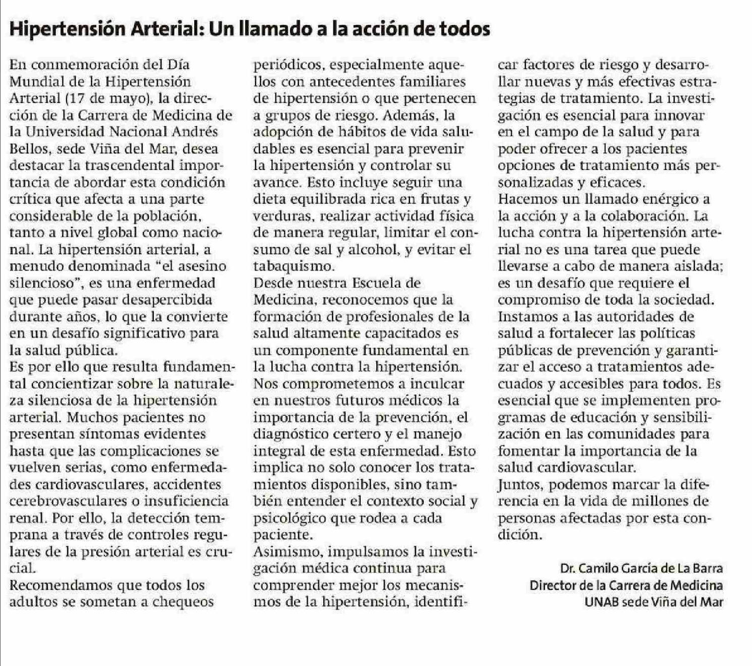 Hipertensión Arterial: Un llamado a la acción de todos 16-05-2025 La Estrella de Valparaíso |