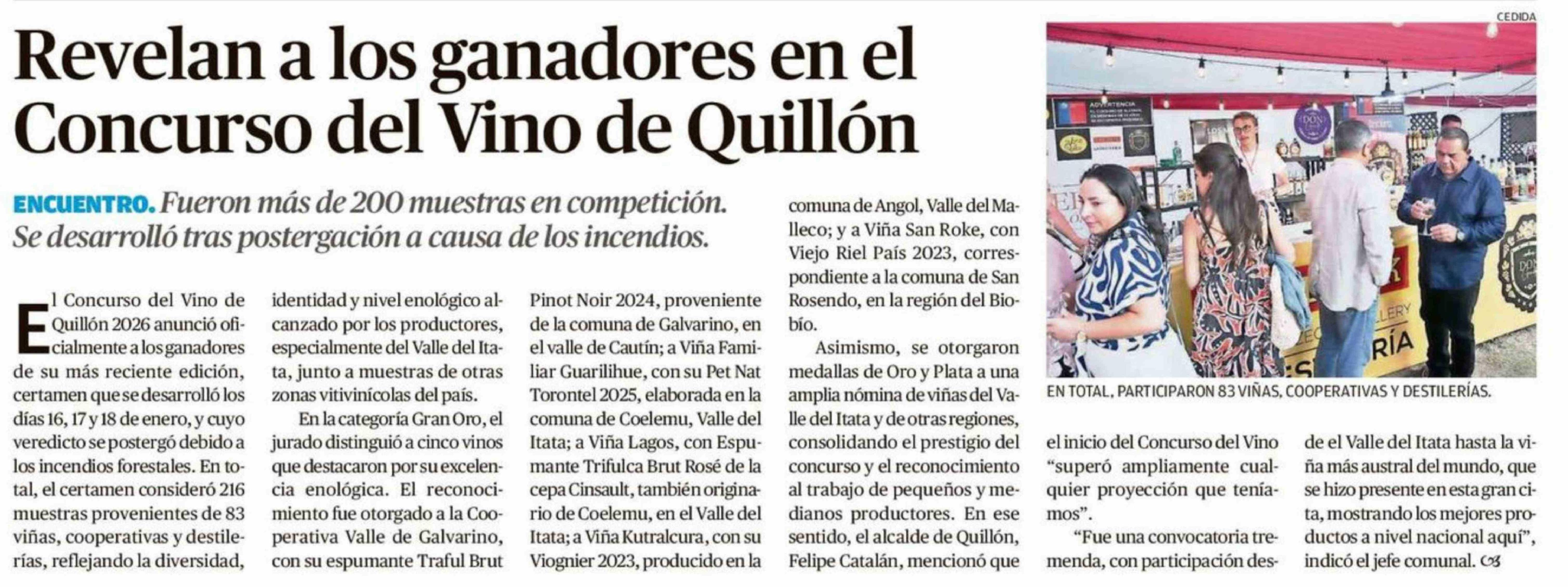 Revelan a los ganadores en el Concurso del Vino de Quillón 03-02-2026 Crónica de Chillán |