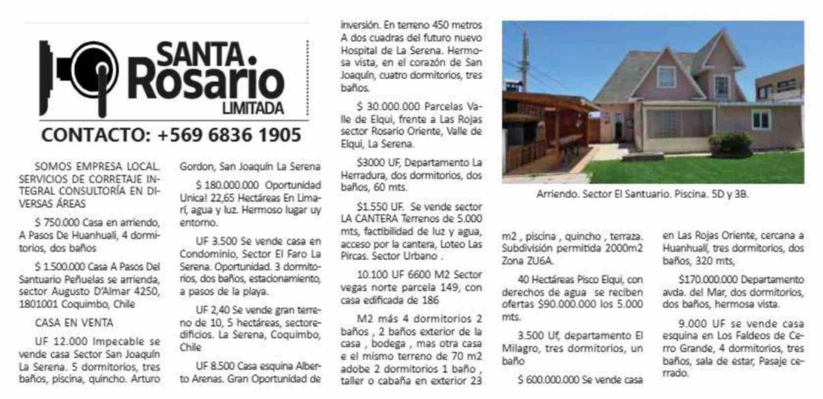 | Título: | SOMOS EMPRESA LOCAL. SERVICIOS DE CORRETAJE INTEGRAL CONSULTORÍA EN DIVERSAS ÁREAS $ 750.000 Casa en arriendo, A Pasos De Huanhuali, 4 dormitorios, dos baños $ 1.500.000 Casa A Pasos Del Santuario Peñuelas se arrienda, sector Augusto D'Almar 4250, 1801001 Coquimbo, Chile CASA EN VENTA UF 12.000 Impe |