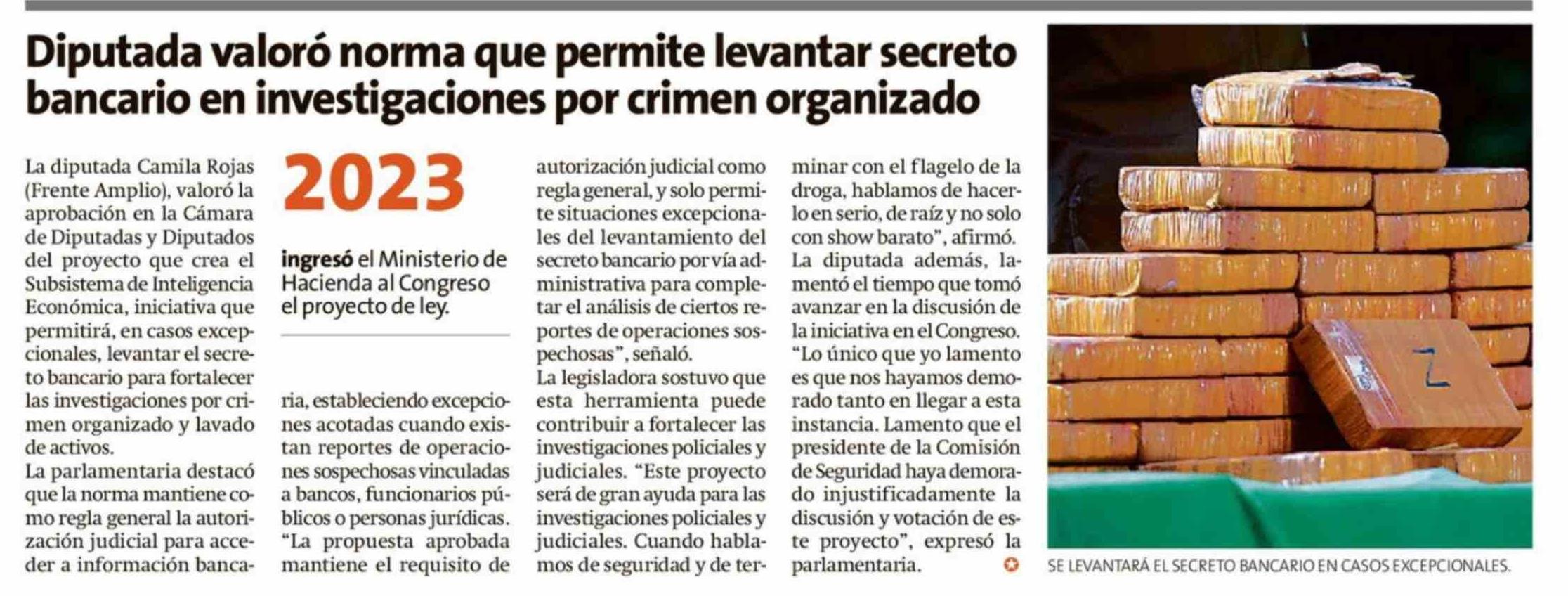 | Título: | Diputada valoró norma que permite levantar secreto bancario en investigaciones por crimen organizado |