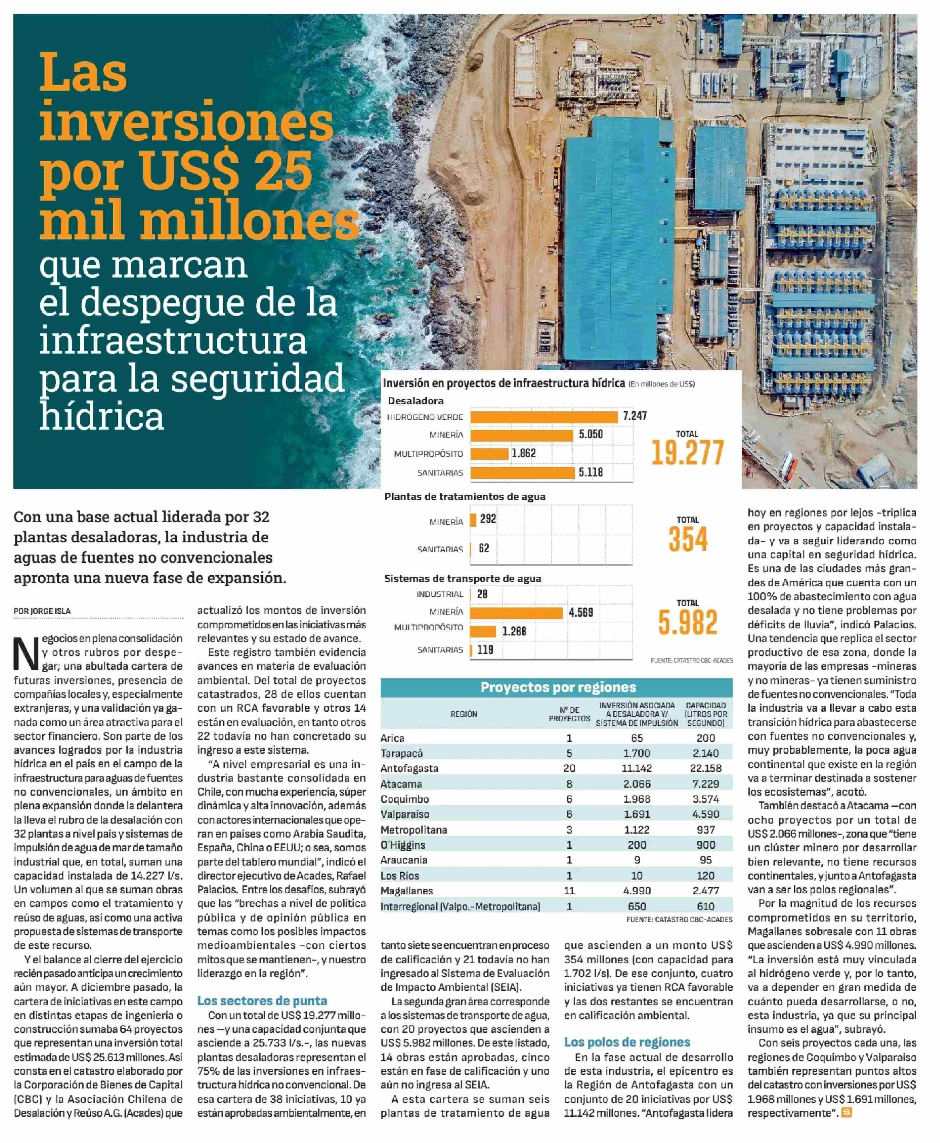 Las inversiones por US$ 25 mil millones que marcan el despegue de la infraestructura para la seguridad hídrica 10-01-2026 Diario Financiero |