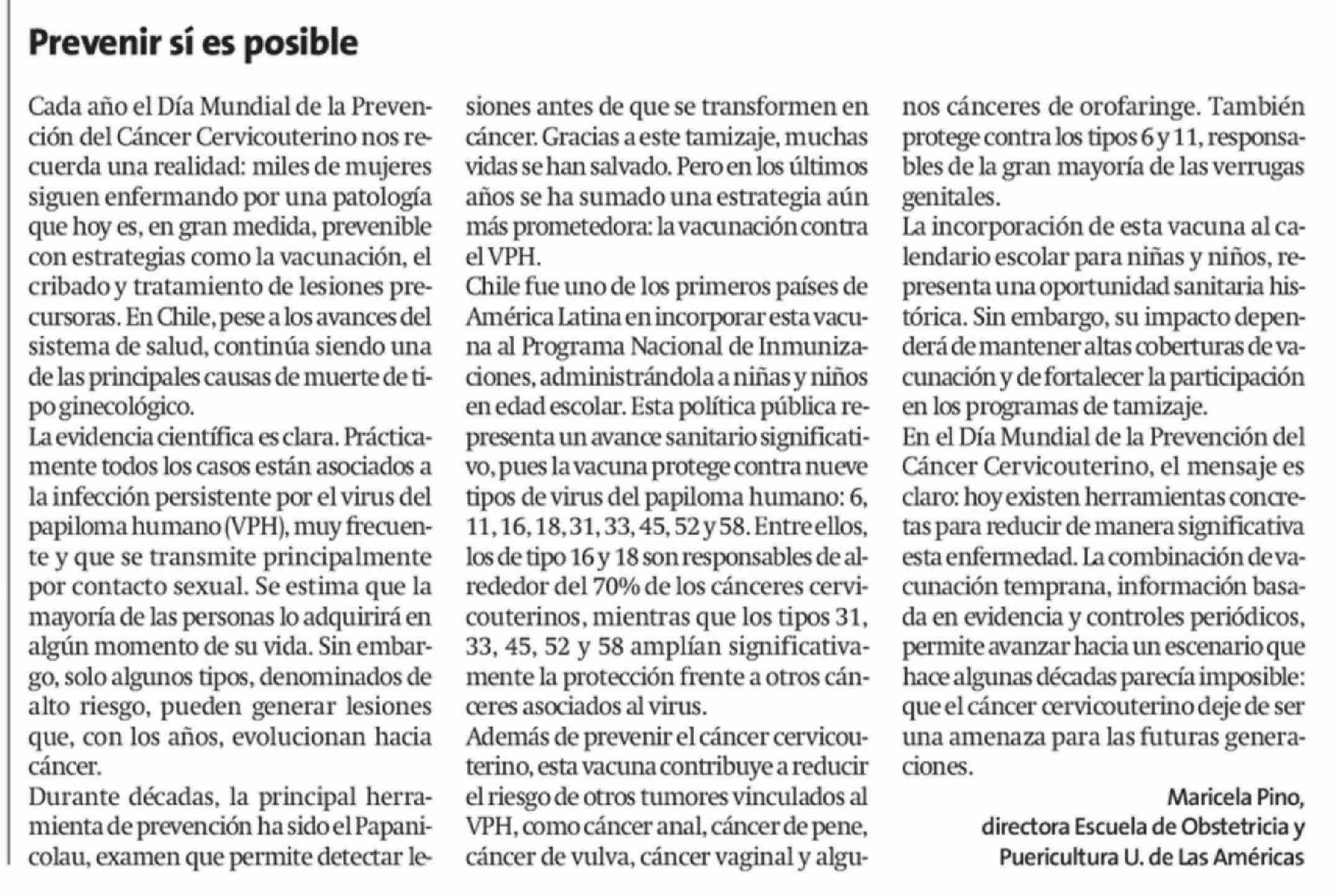 Título: Columnas de Opinión: Prevenir sí es posible