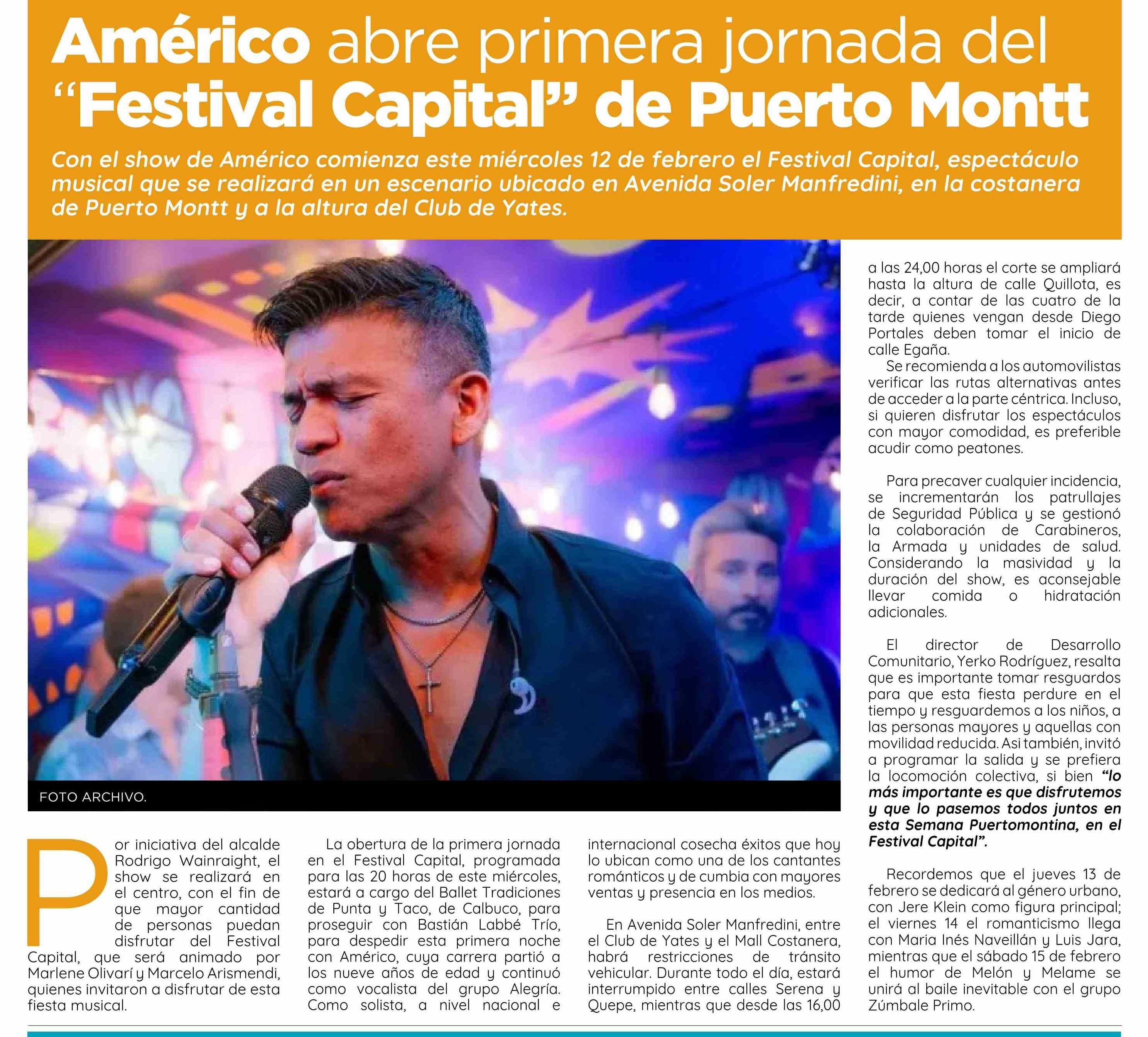 Américo abre primera jornada del “Festival Capital” de Puerto Montt 12-02-2025 El Insular |