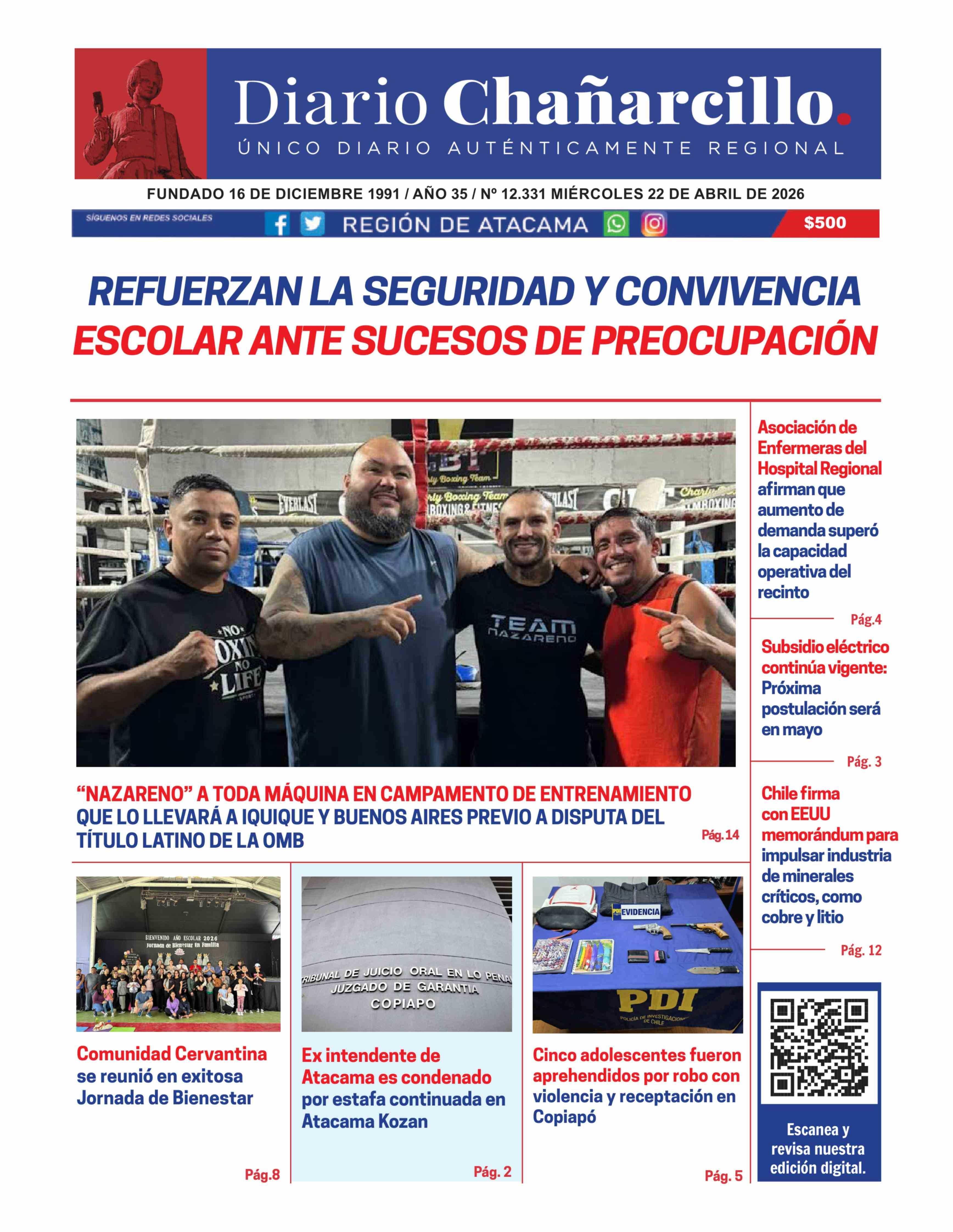 | Fecha: | 22-04-2026 | Sector: | Portada | Región: | Región de Atacama |