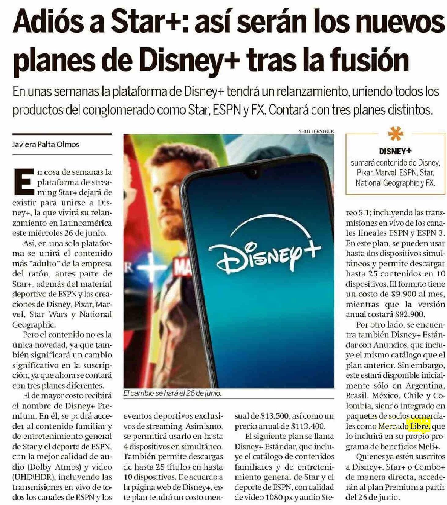 | Título: | Adiós a Star+: así serán los nuevos planes de Disney+ tras la fusión |