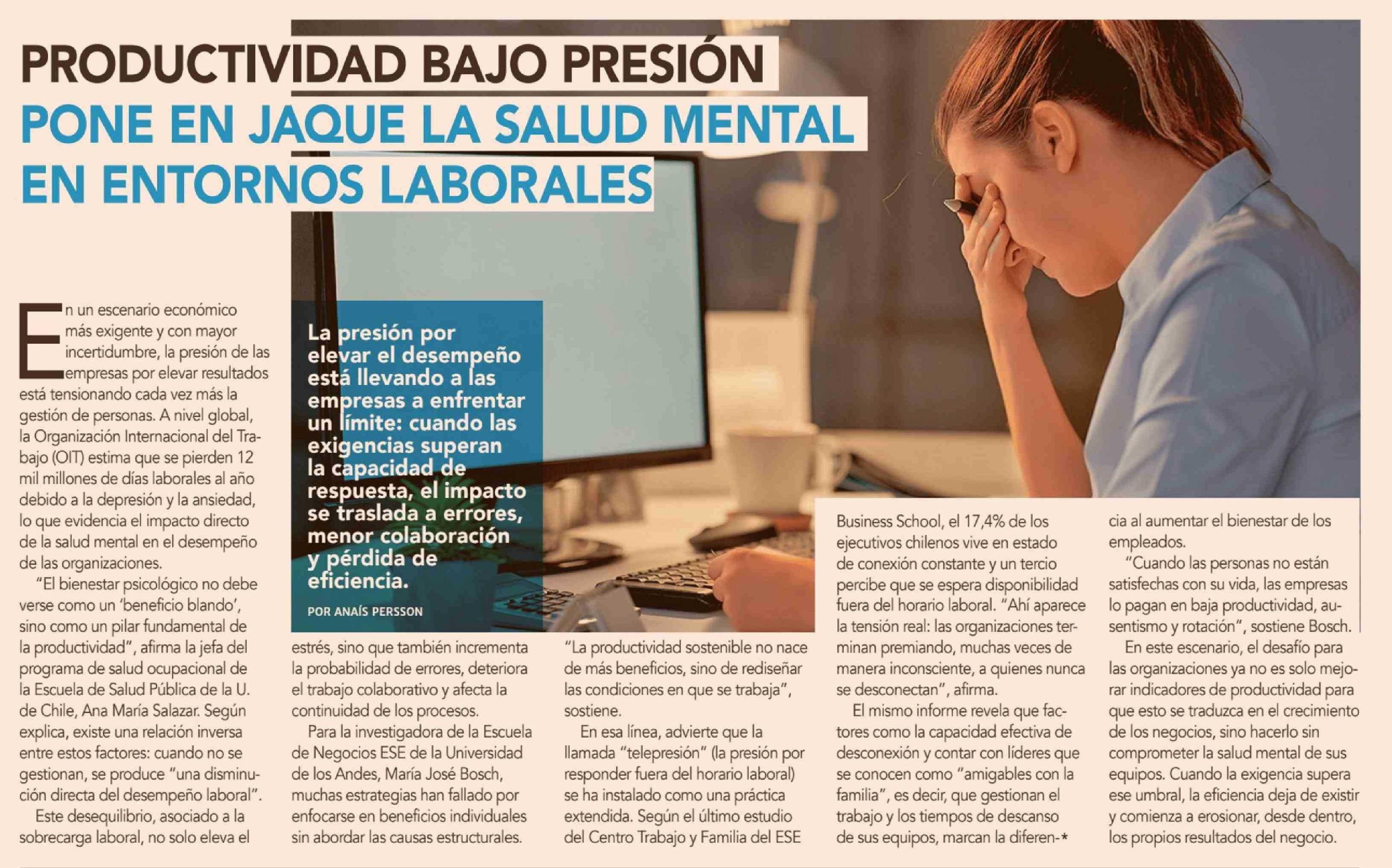 PRODUCTIVIDAD BAJO PRESIÓN PONE EN JAQUE LA SALUD MENTAL EN ENTORNOS LABORALES 28-04-2026 Diario Financiero |
