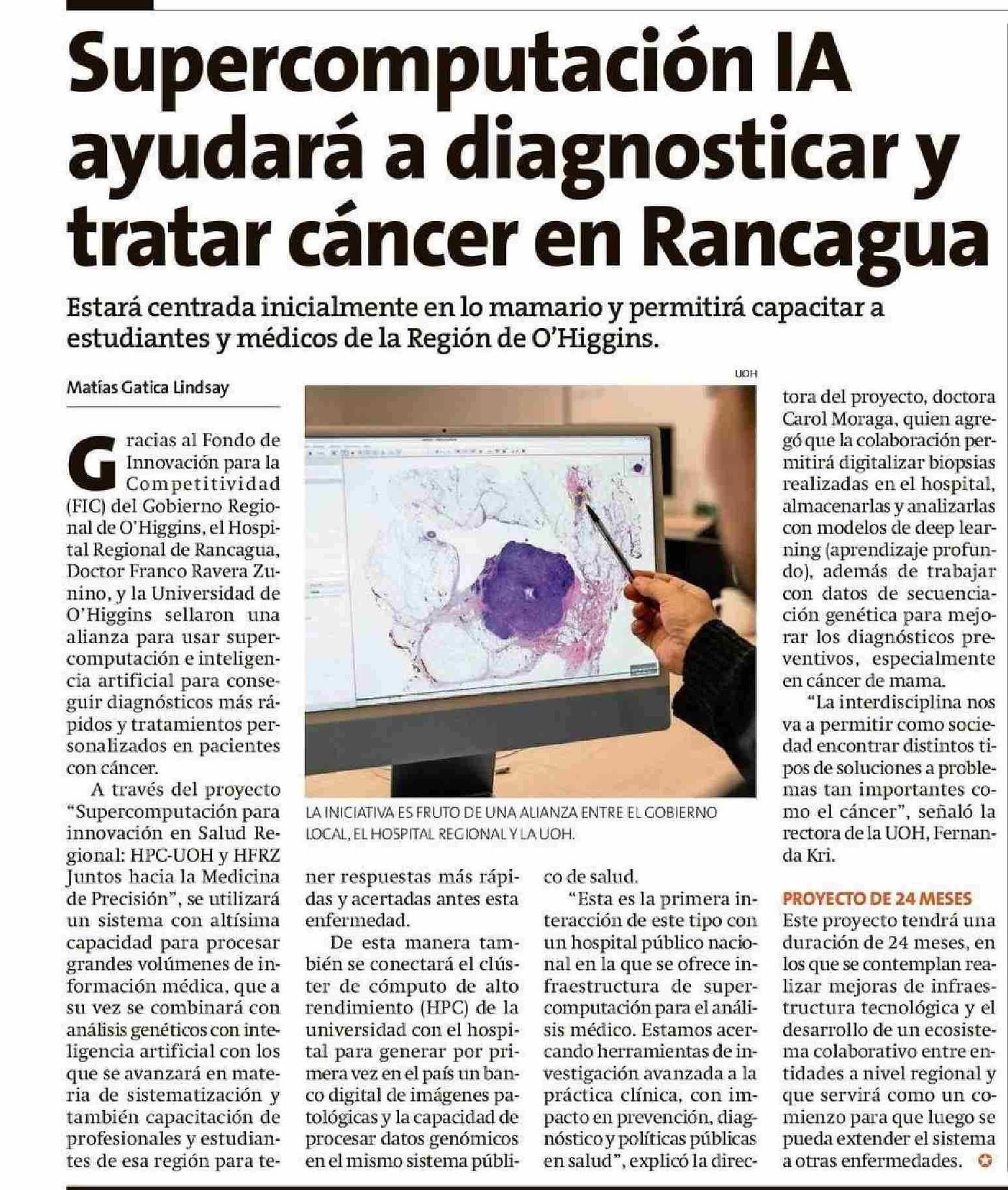 | Título: | Supercomputación lA ayudará a diagnosticar y tratar cáncer en Rancagua |