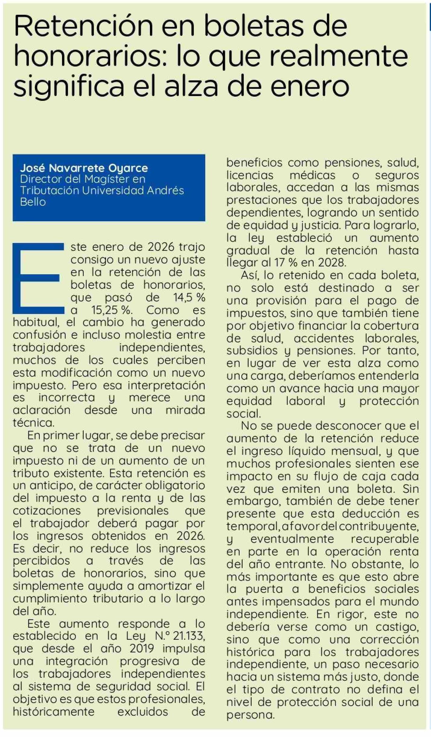 | Título: | Retención en boletas de honorarios: lo que realmente significa el alza de enero |