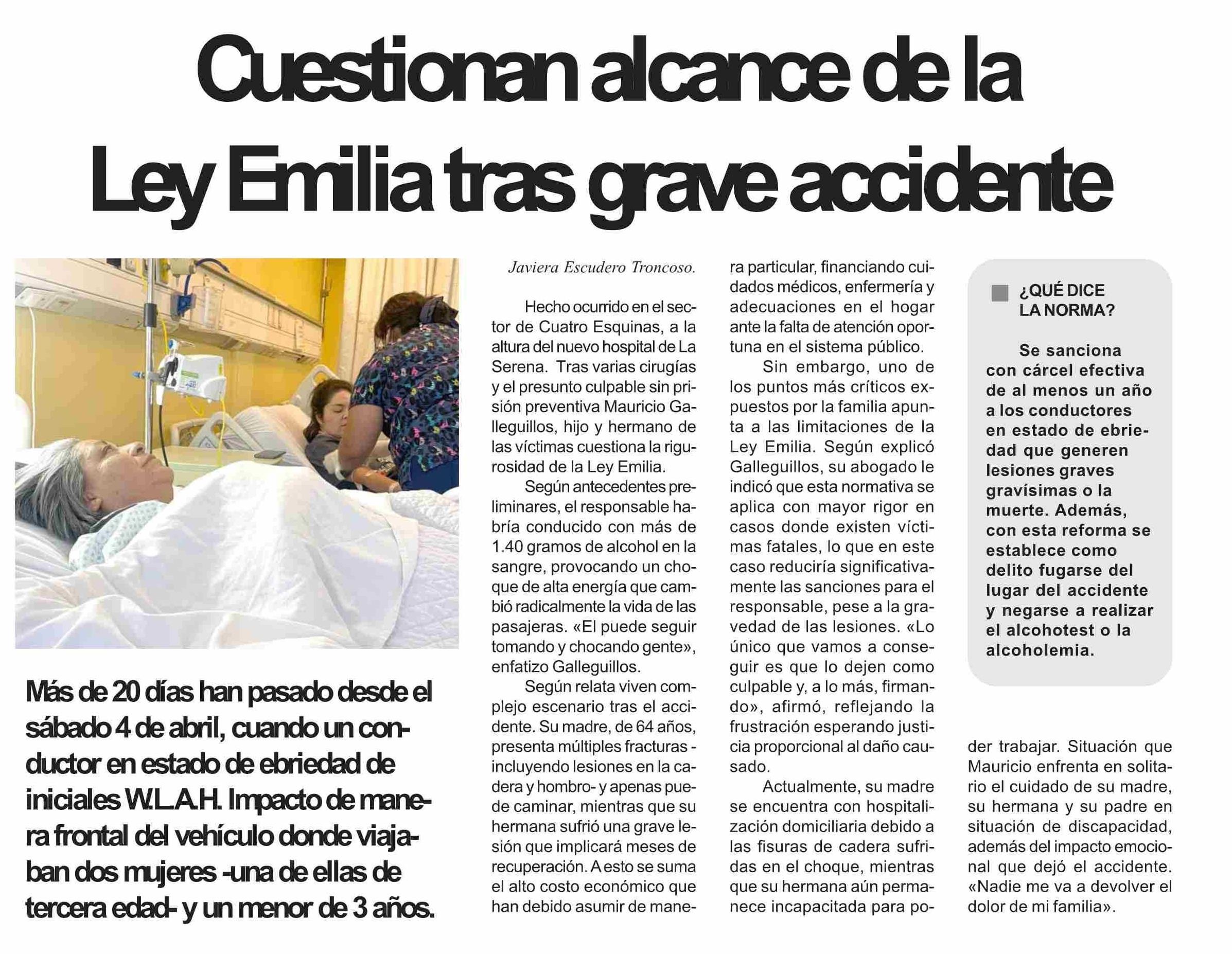 Cuestionan alcance de la Ley Emilia tras grave accidente 26-04-2026 Diario la Región |