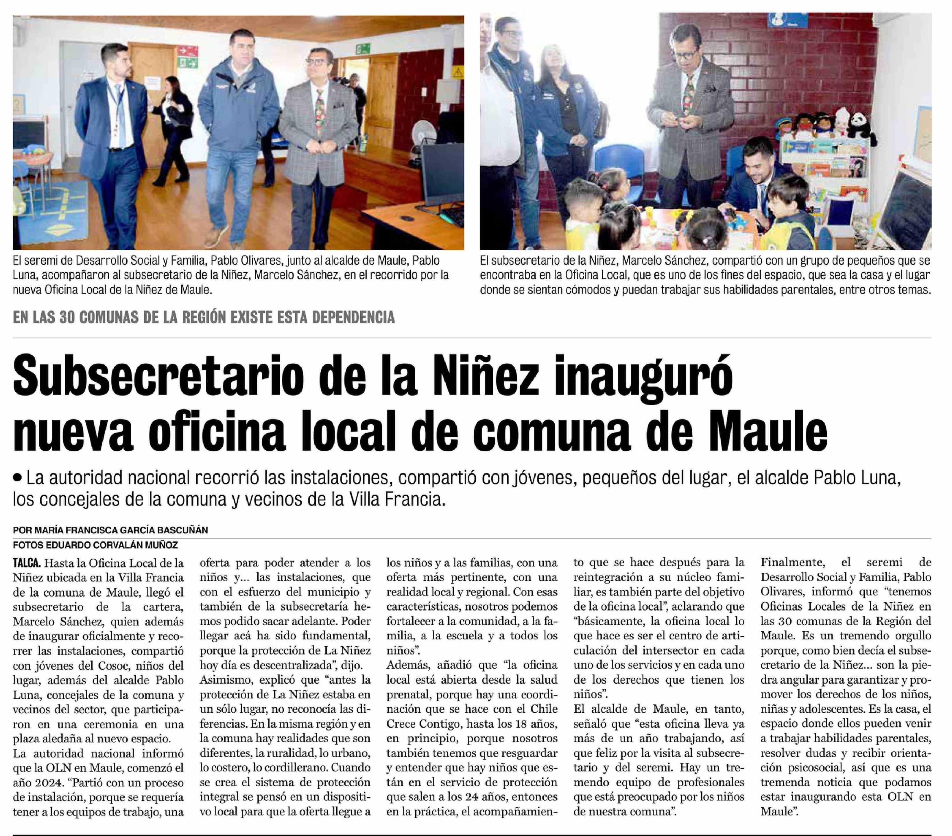 Título: Subsecretario de la Niñez inauguró nueva oficina local de comuna de Maule