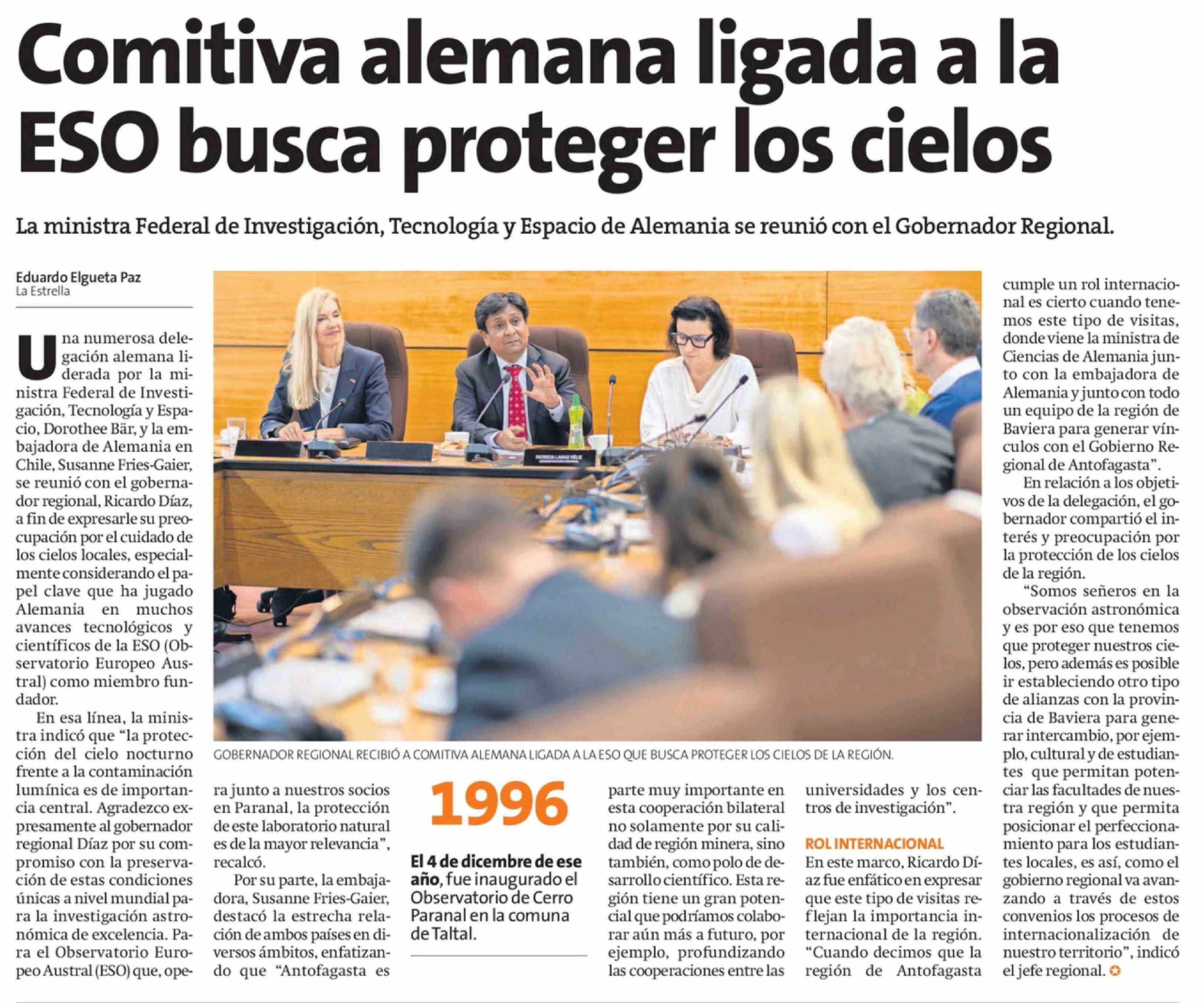 Título: Comitiva alemana ligada a la ESO busca proteger los cielos