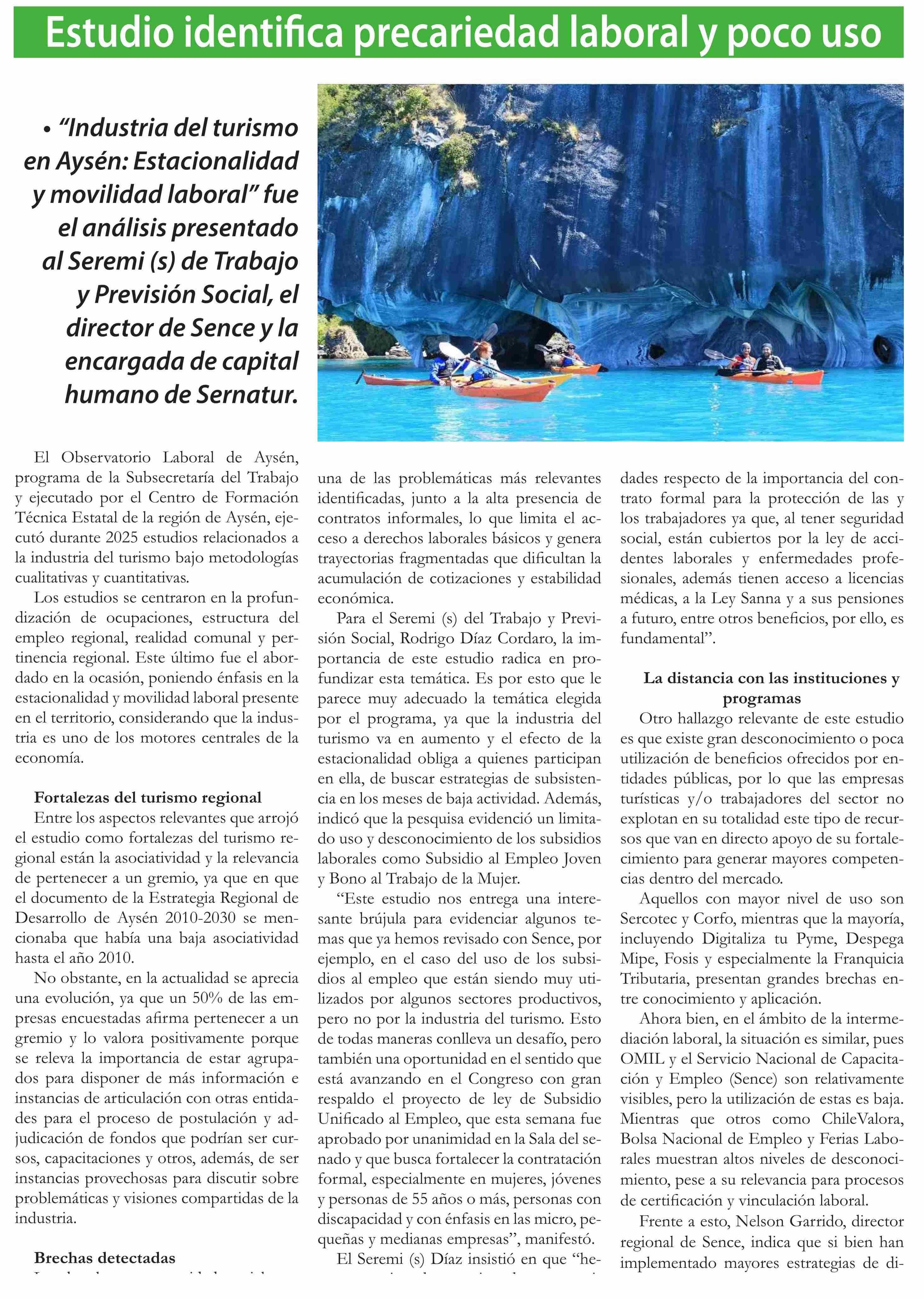 Título: Estudio identifica precariedad laboral y poco uso de beneficios públicos en el turismo regional
